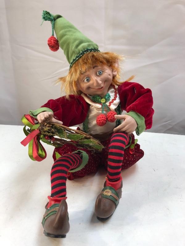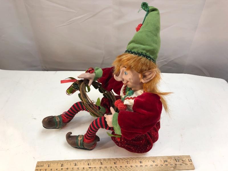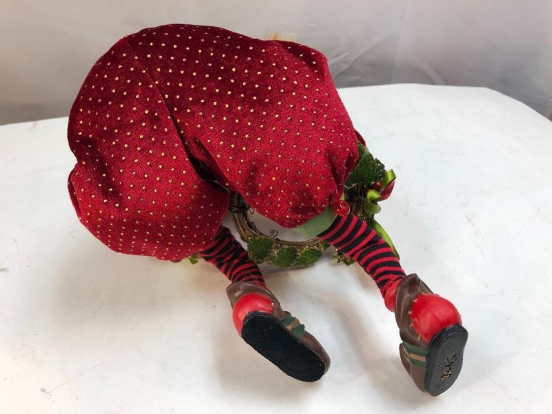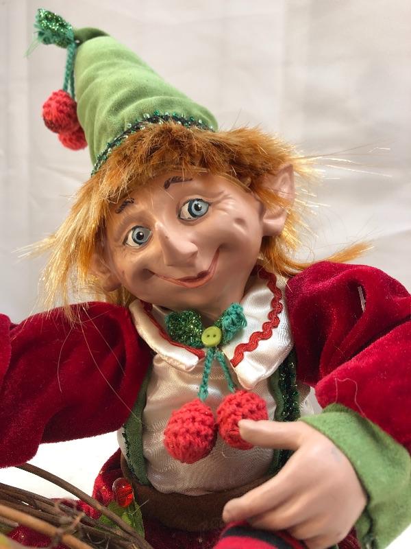 2008 Christmas Elf holding wreath, resin head, hands, and shoes