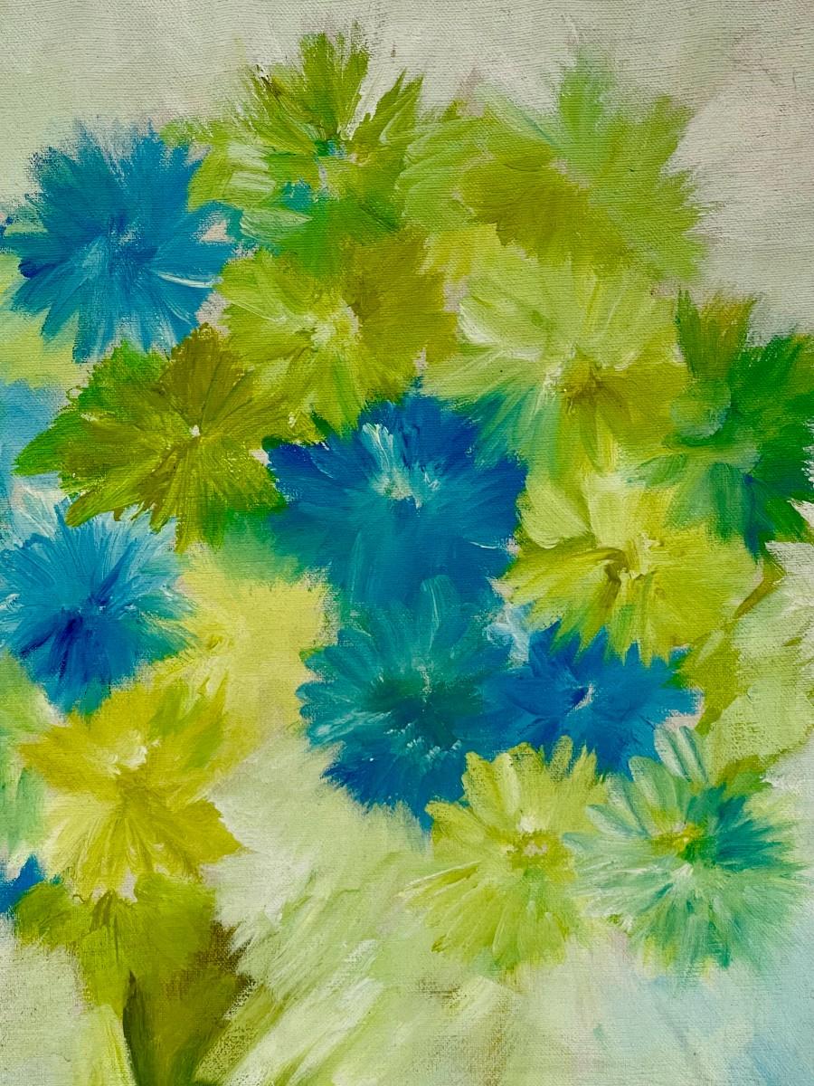 Still Life Vase with Green and Blue Flowers