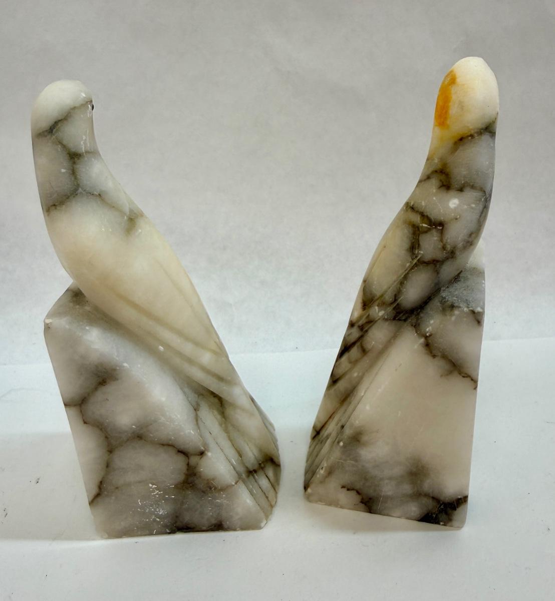 Vintage Bookends Hand Carved Italian Alabaster Marble Parakeets or Lovebirds Parrots