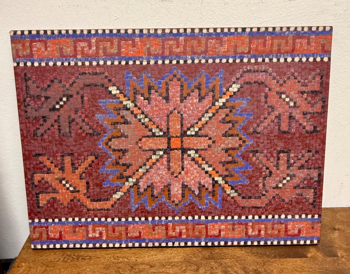Artwork Oil on Canvas Painting Geometric Pattern pink orange purple