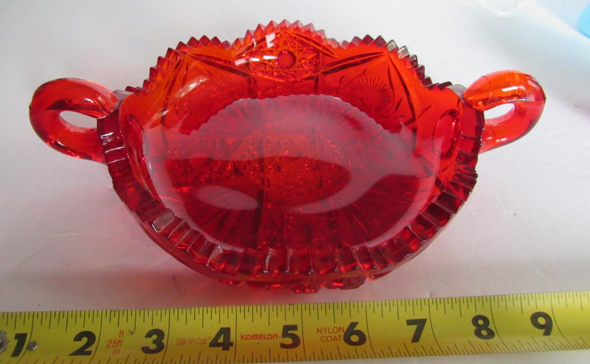Dalzell Viking Red 2 Handled Glass Large Nappy