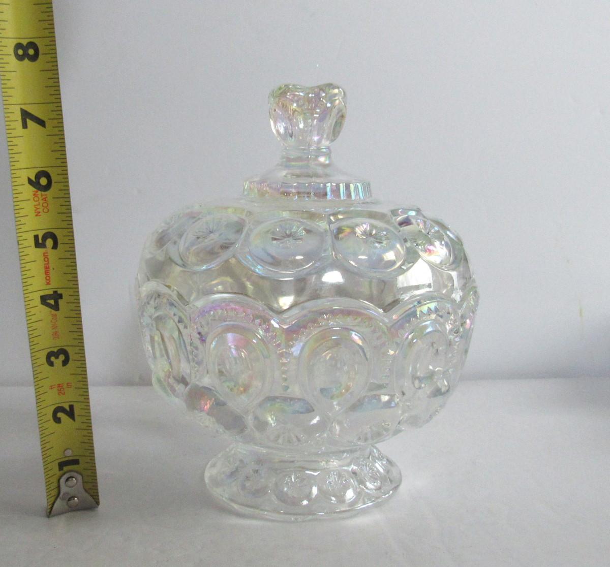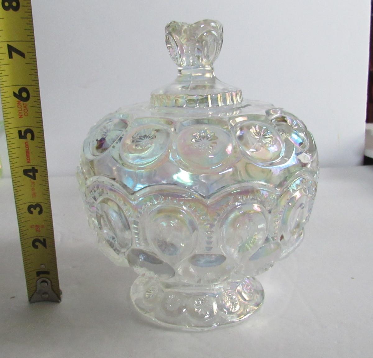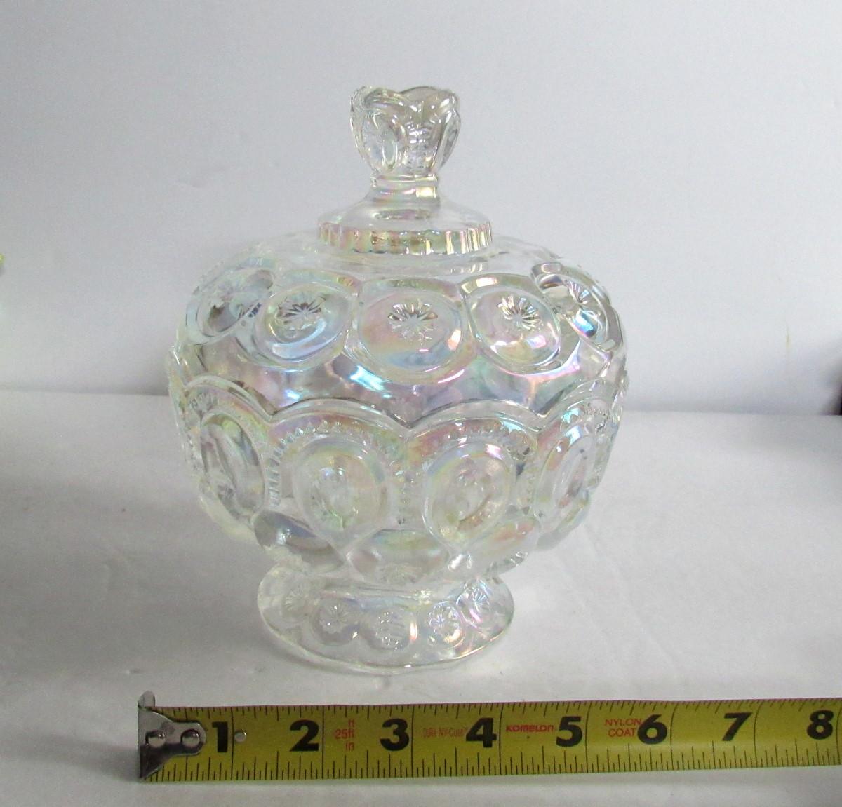 Older Smith Glass Moon and Star Carnival Glass Covered Compote