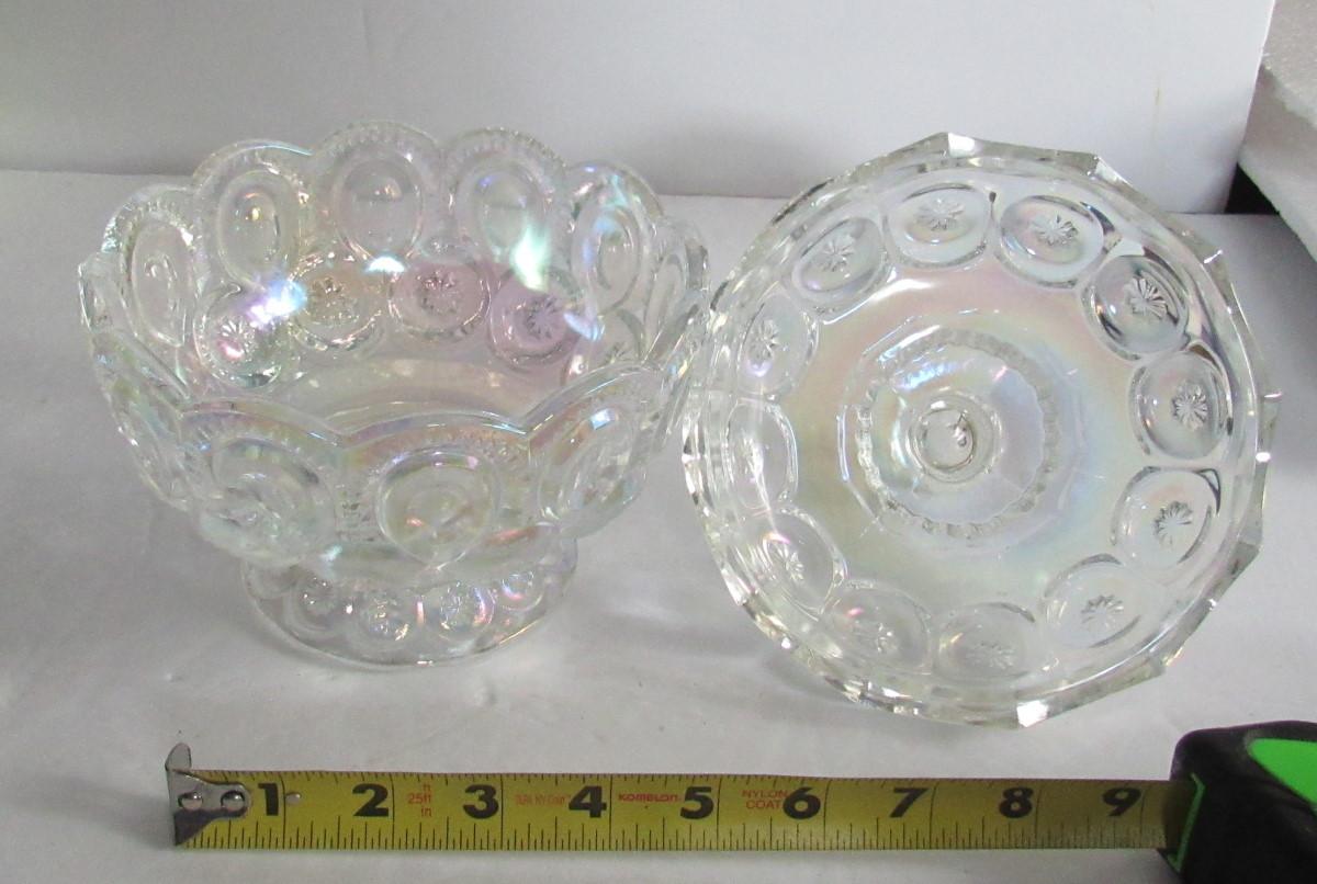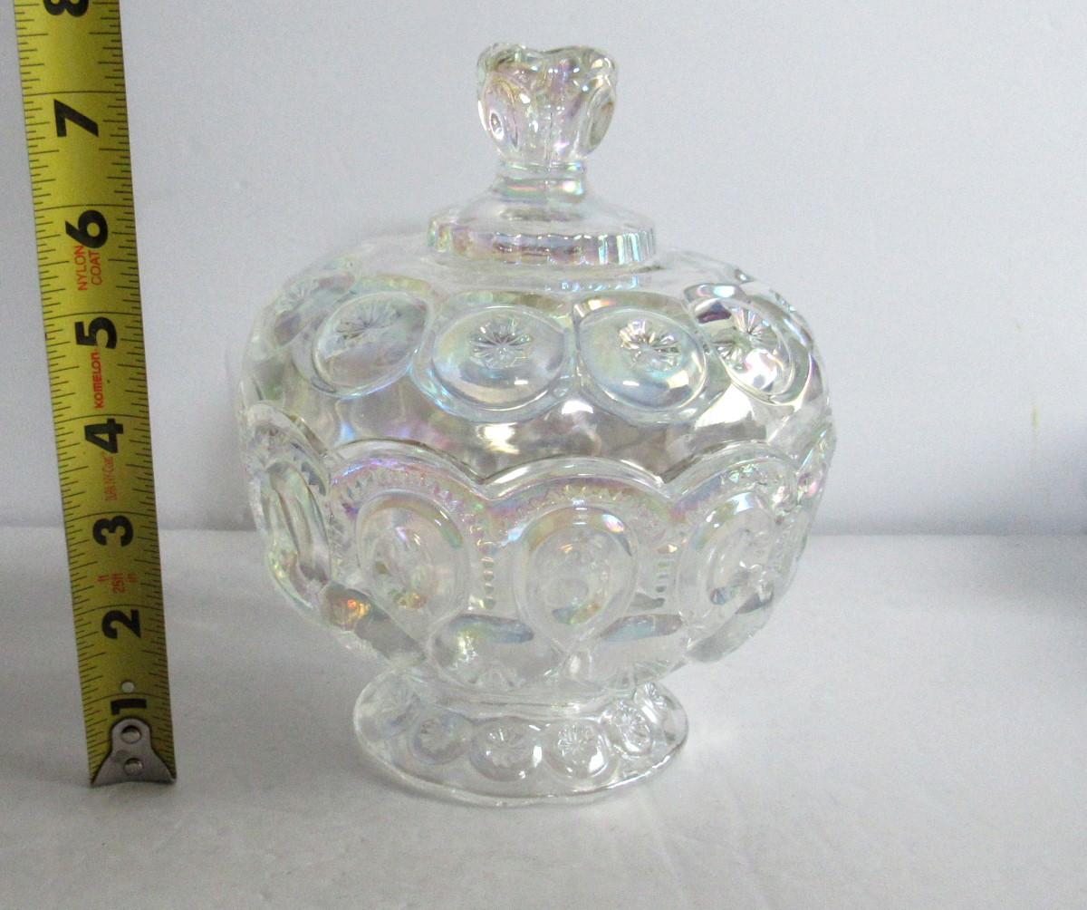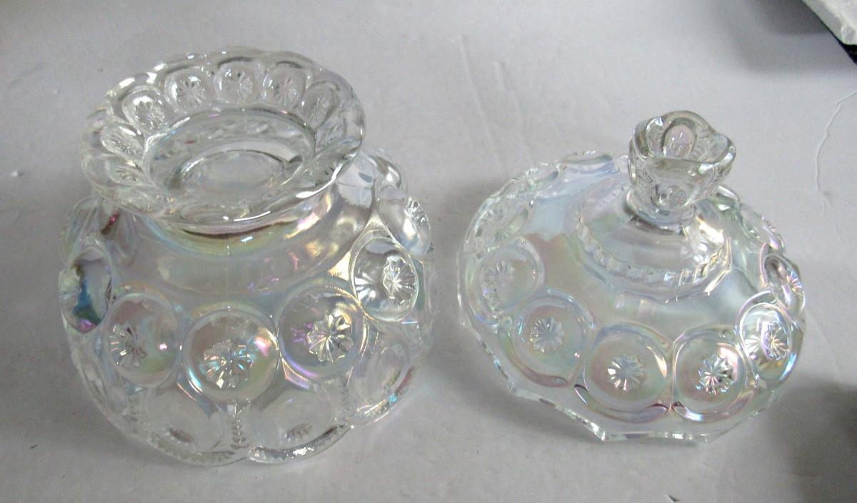 Older Smith Glass Moon and Star Carnival Glass Covered Compote
