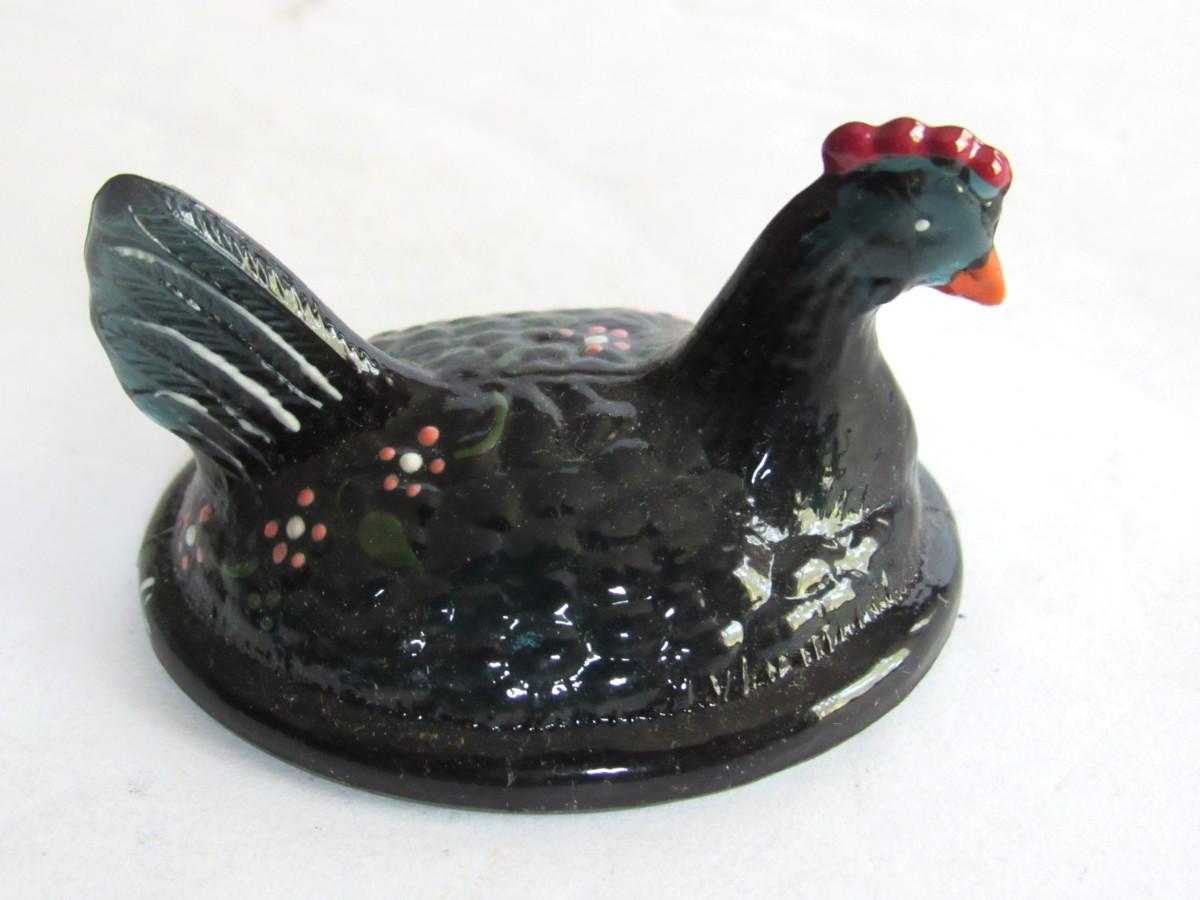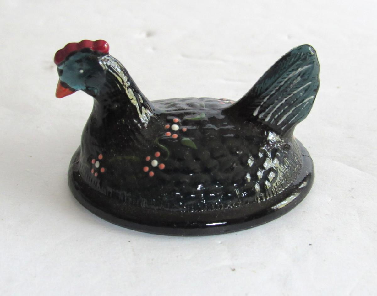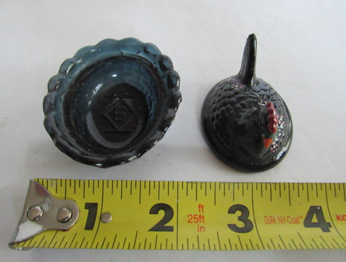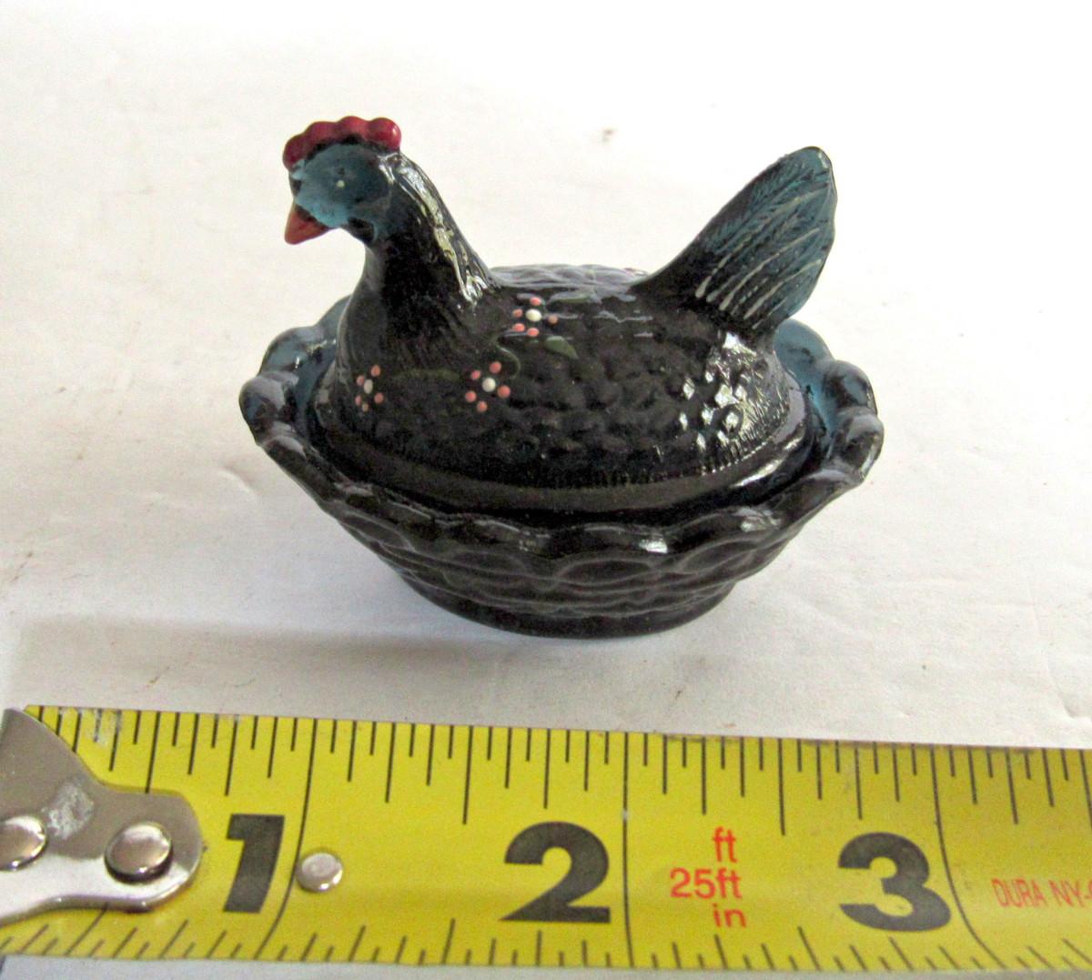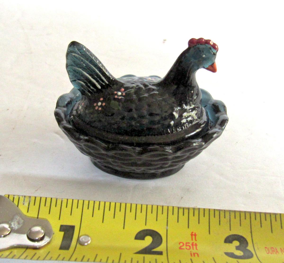 Unusual Color Vintage Boyd Glass Covered Hen Salt, Hand Painted Smoky Midnight Blue Color