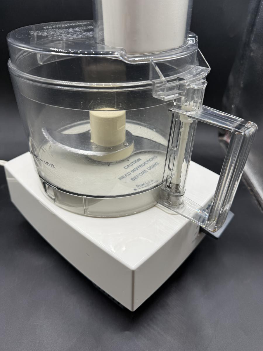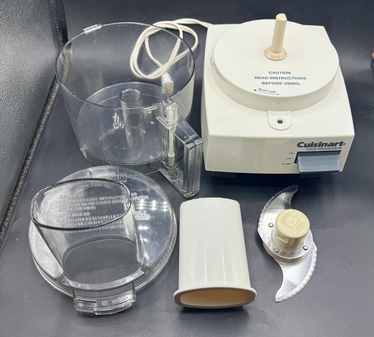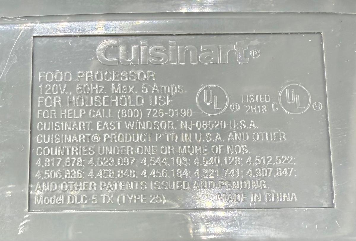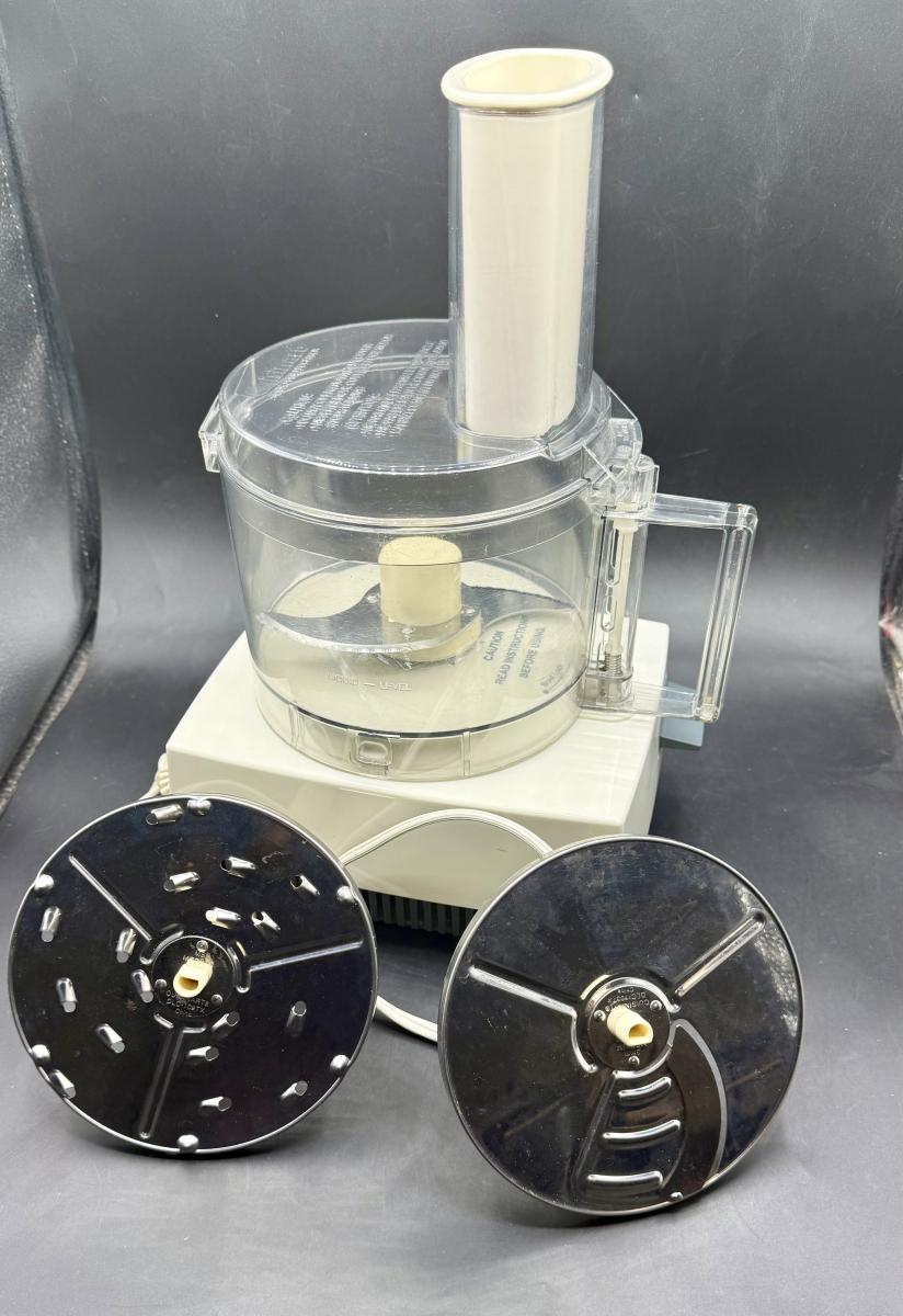 Model DLC-5, capacity of 7 cups. Includes: Work bowl with handle, work bowl cover, with large feed tube and pusher, stainless steel chopping blade, medium shredding disc, and standard slicing disc. Tested, works as expected.