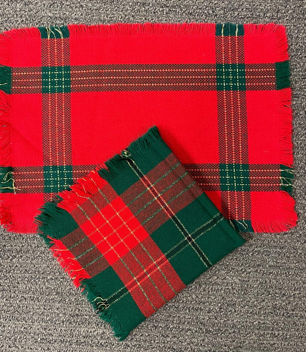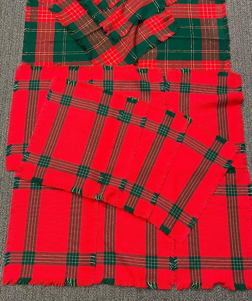 Christmas Winter Holiday Plaid Table Linen - 20 piece Lot - 10 Placemats & 10 Napkins