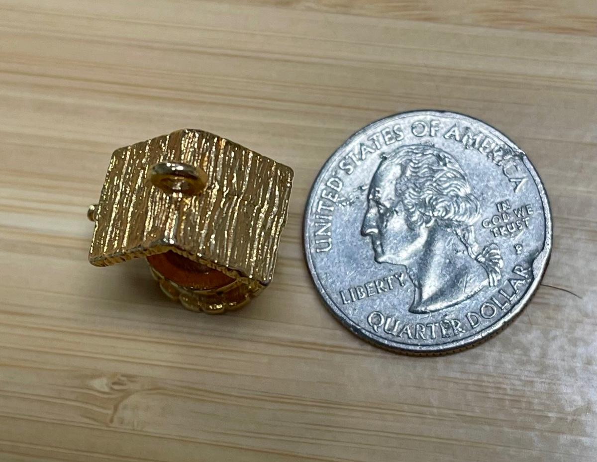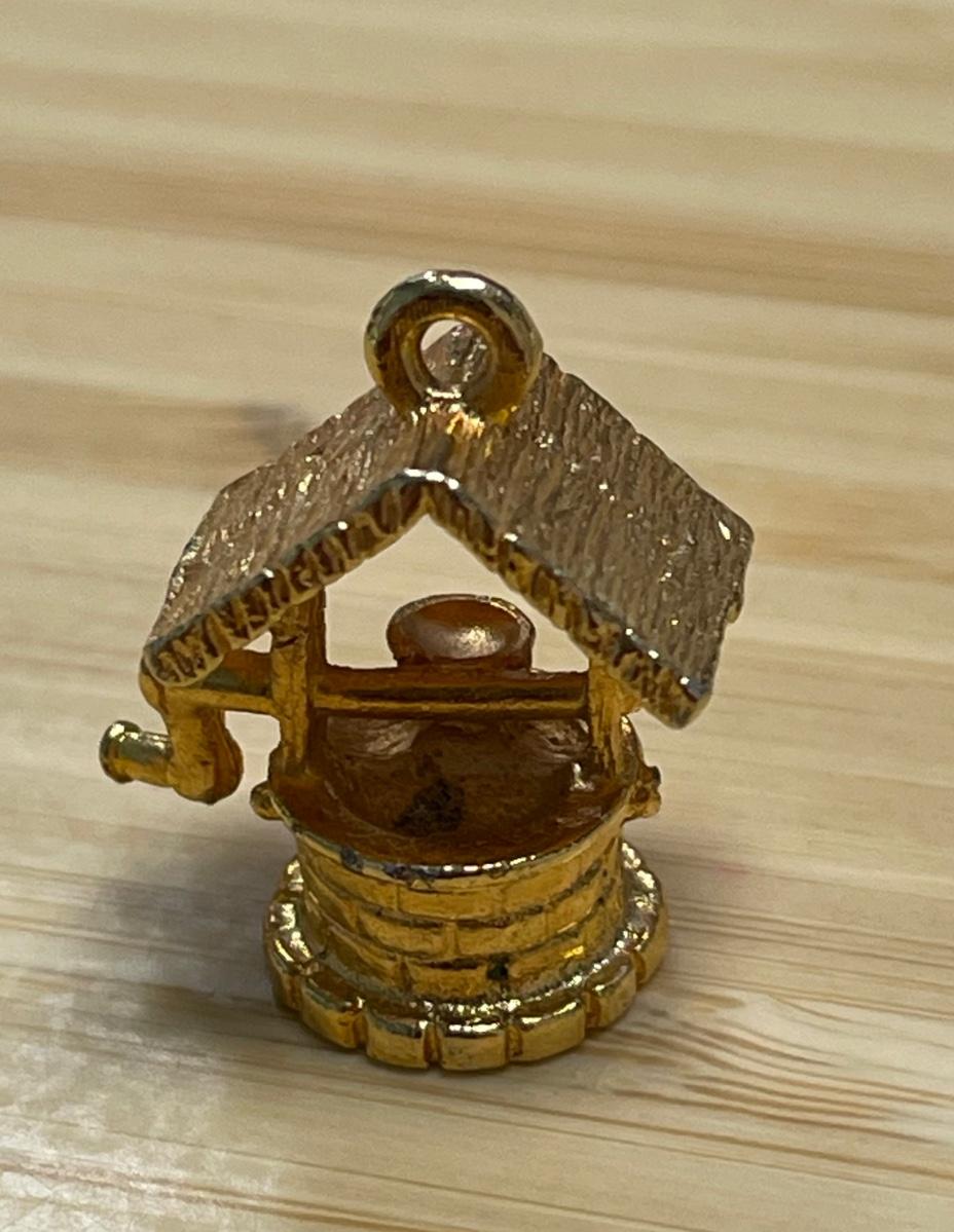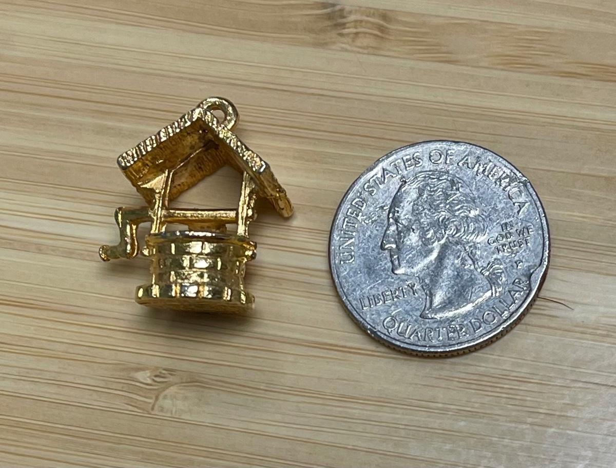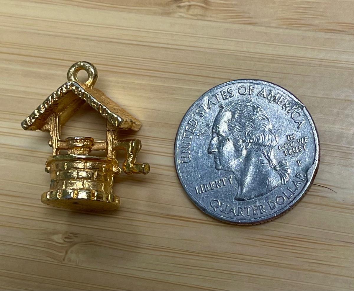Tiny Gold Tone Wishing Well Charm Pendant. No 14k gold marks. Barely 1" size.