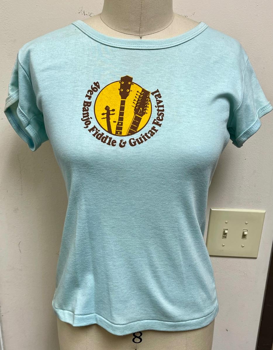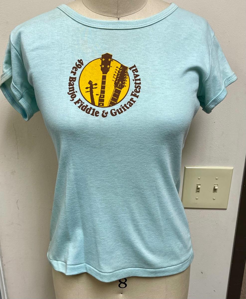 Banjo, Fiddle & Guitar Festival T-shirt Light Blue Women's size L large