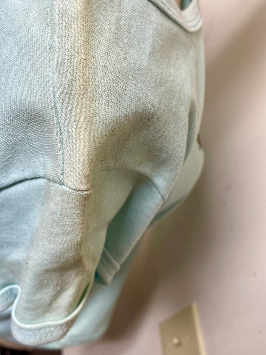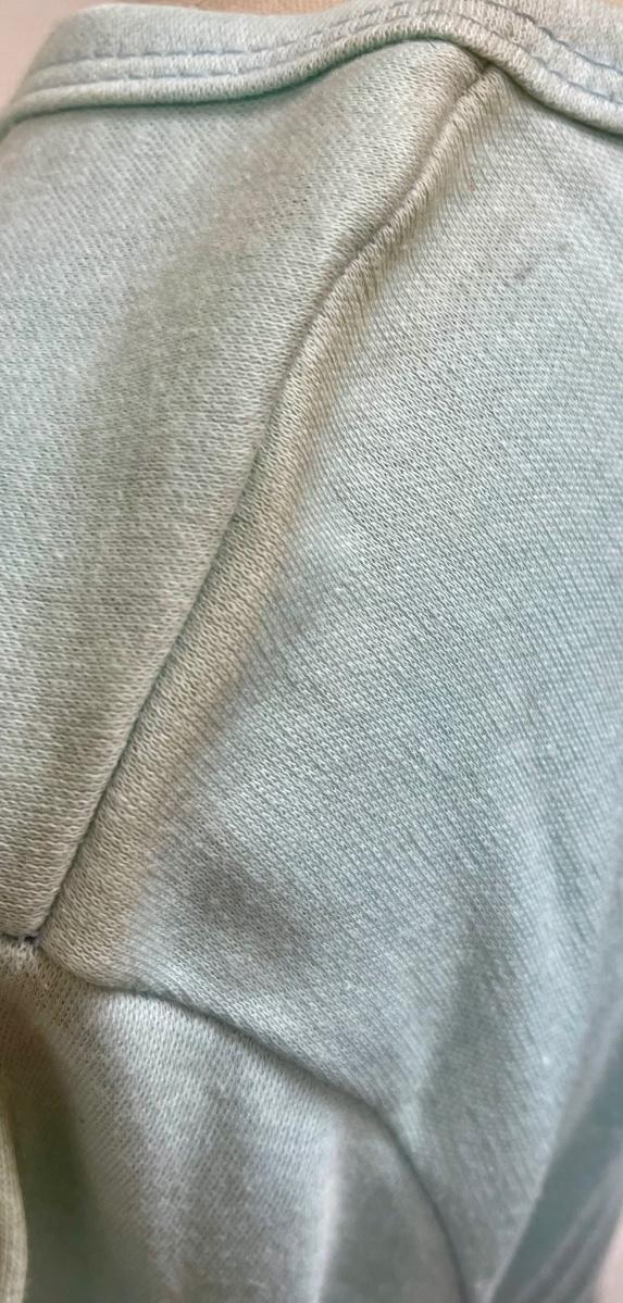 In good condition, but top of shoulders are discolored from dust. It probably won't show after washing.