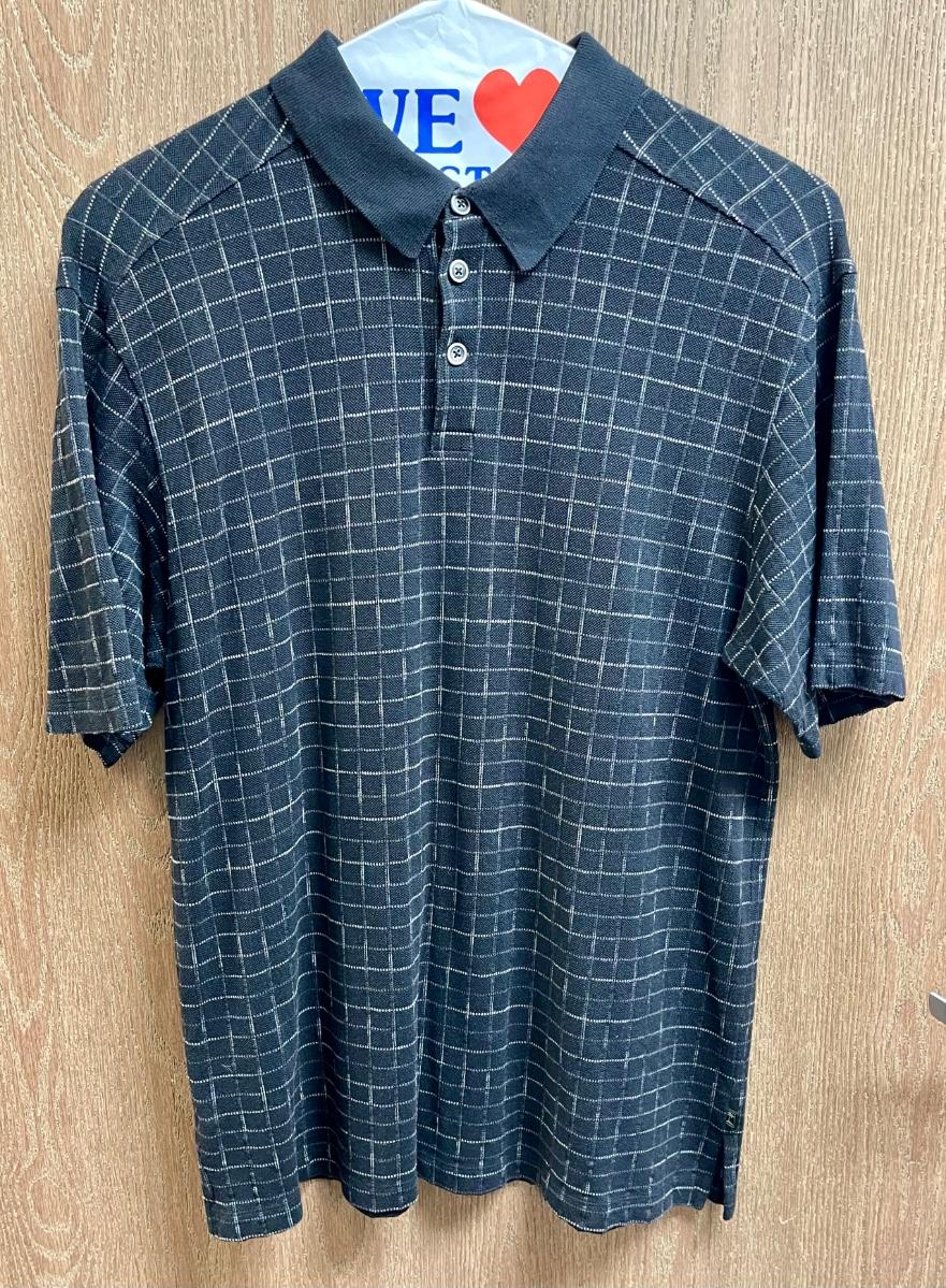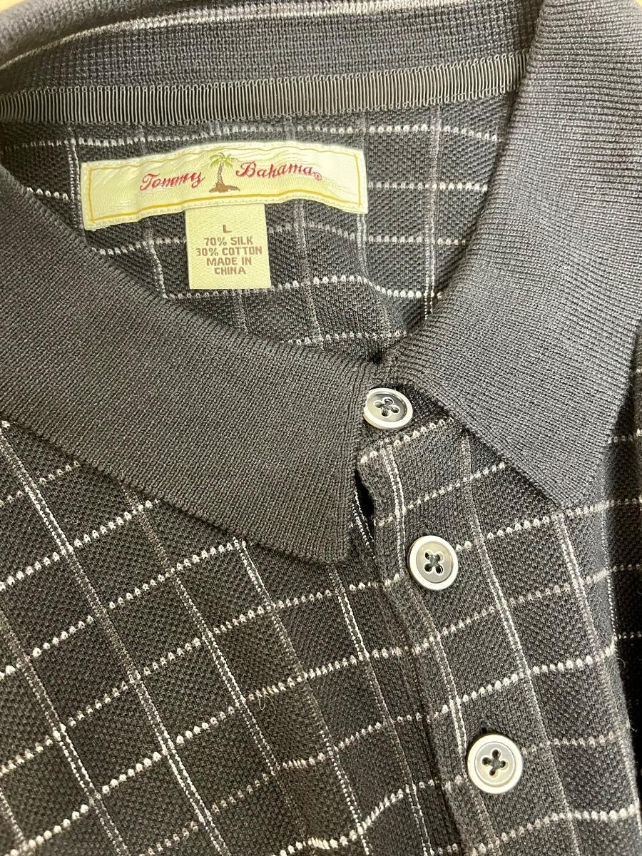 Tommy Bahama Polo Shirt Black with White Crosshatching pattern size L large