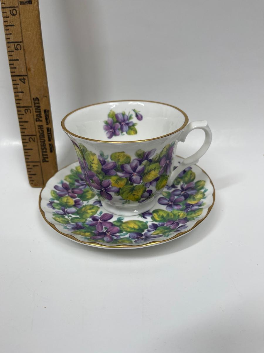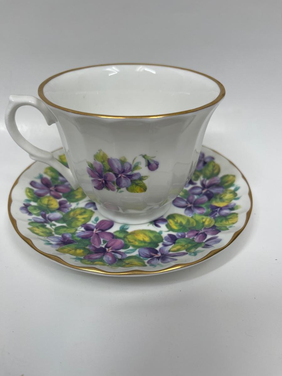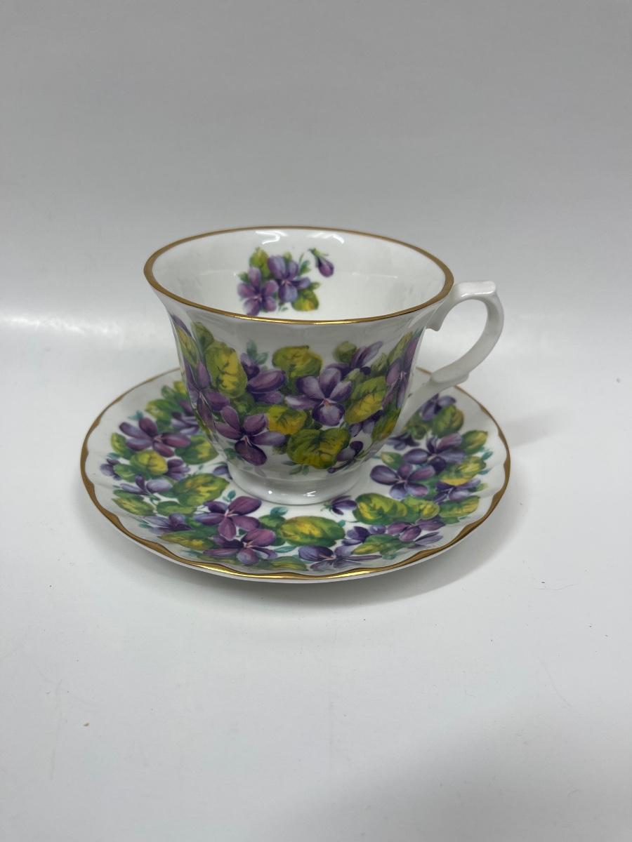 Purple Violet Flowers Teacup & Saucer Crown Trent Staffordshire England