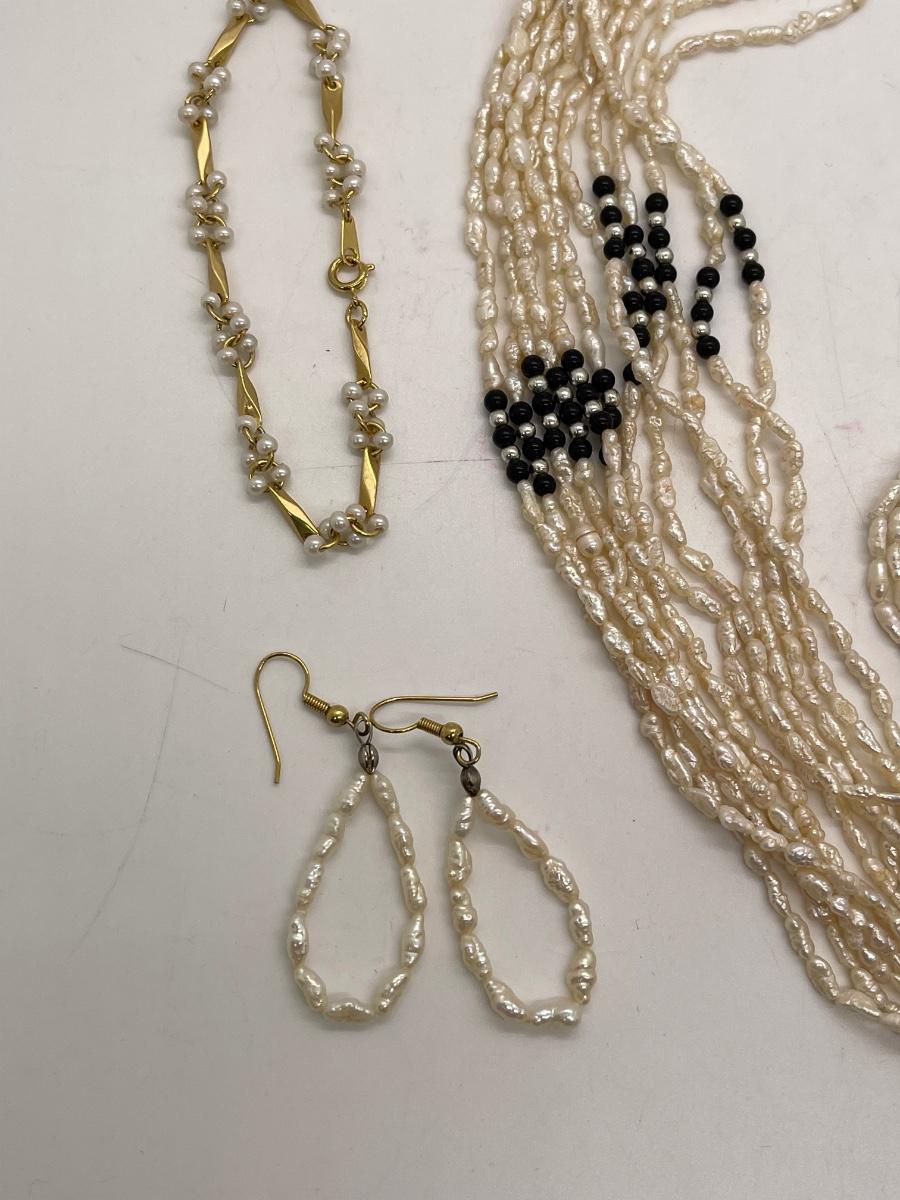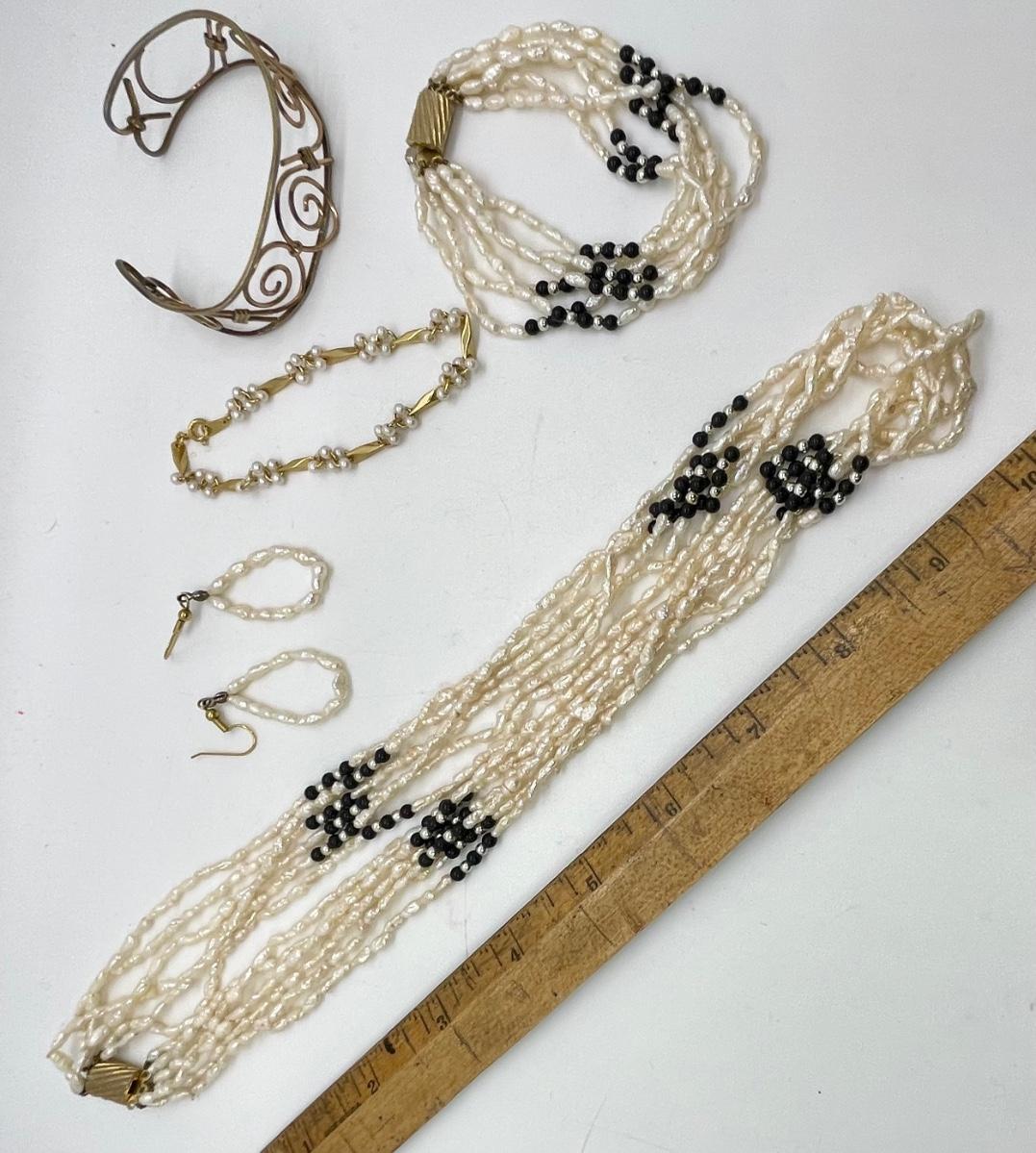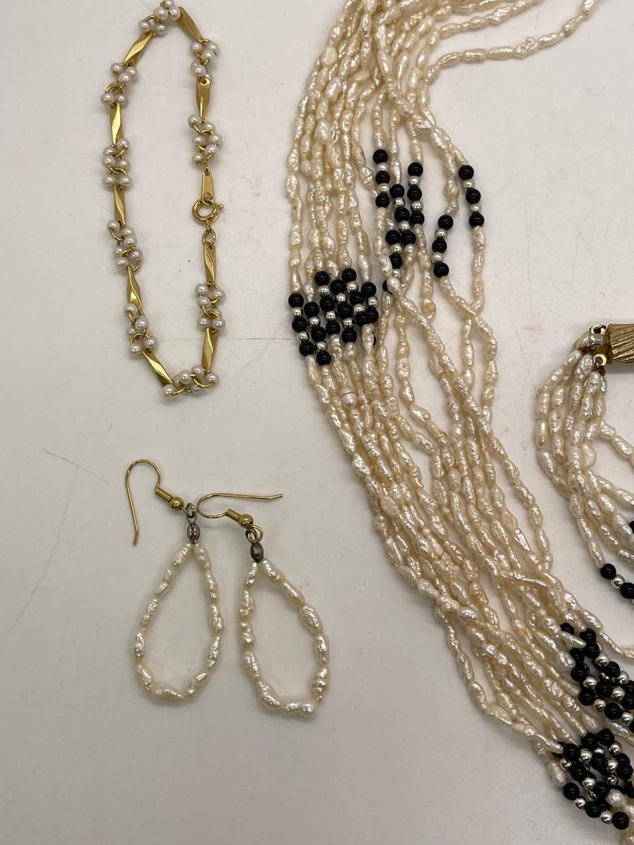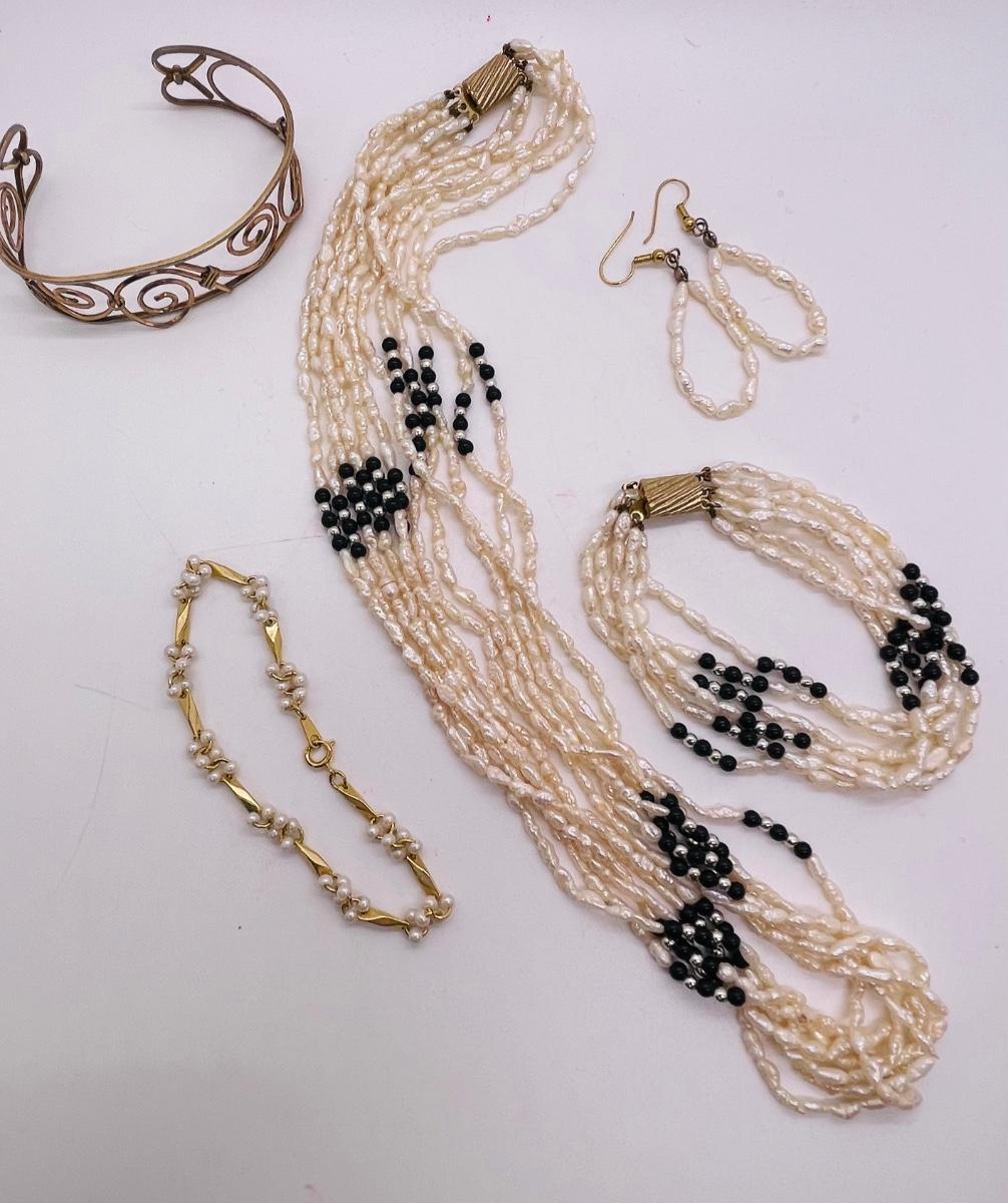 Includes earrings, necklace, bracelet, and more. In good previously owned condition.
