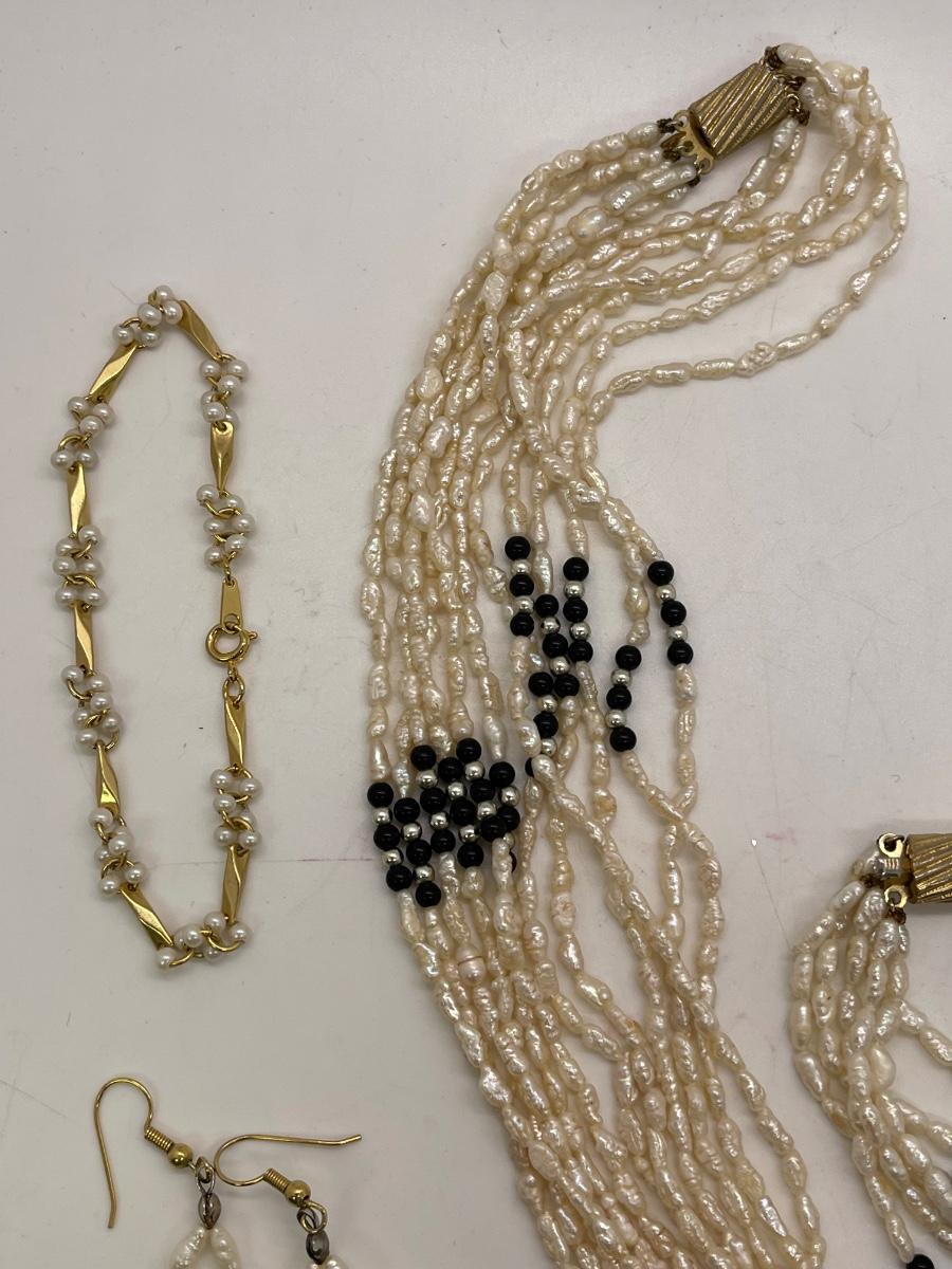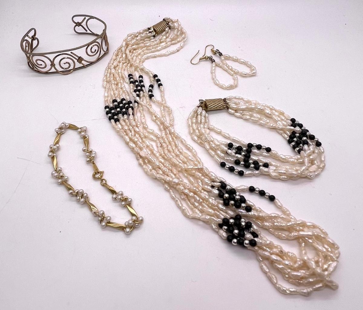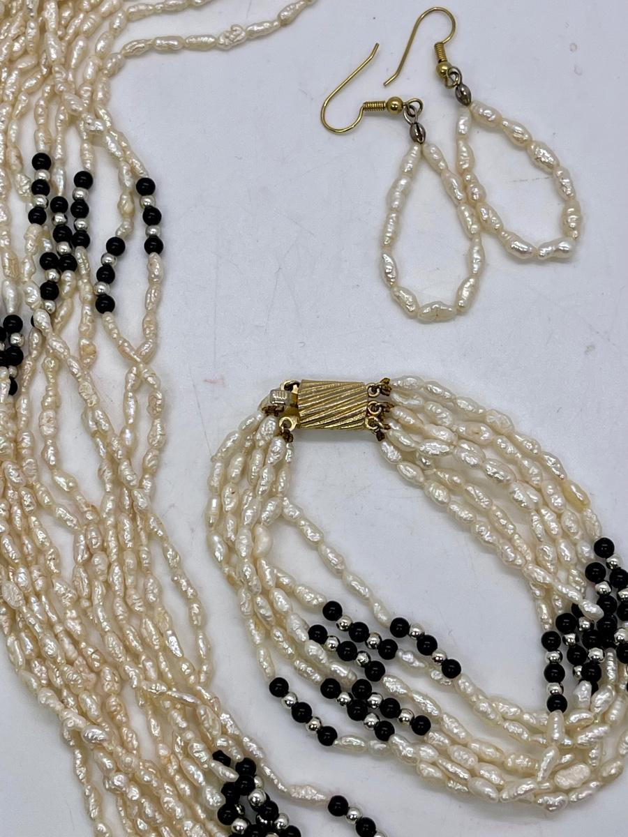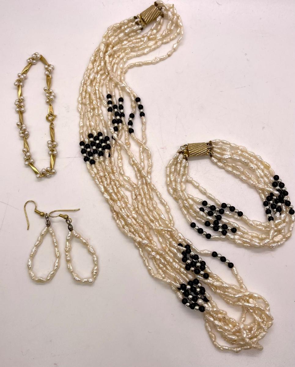 Includes earrings, necklace, bracelet, and more. In good previously owned condition.