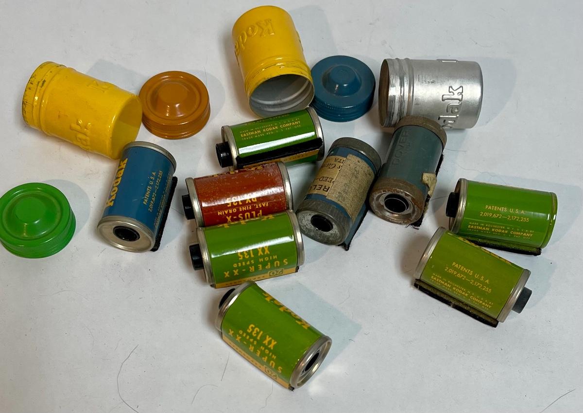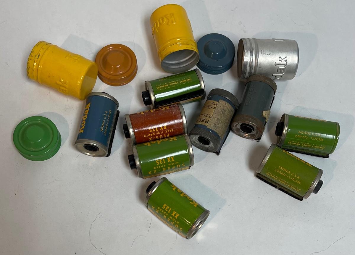 Vintage Kodak Aluminum Tin Film Canisters w/ Lids and Used Film Rolls