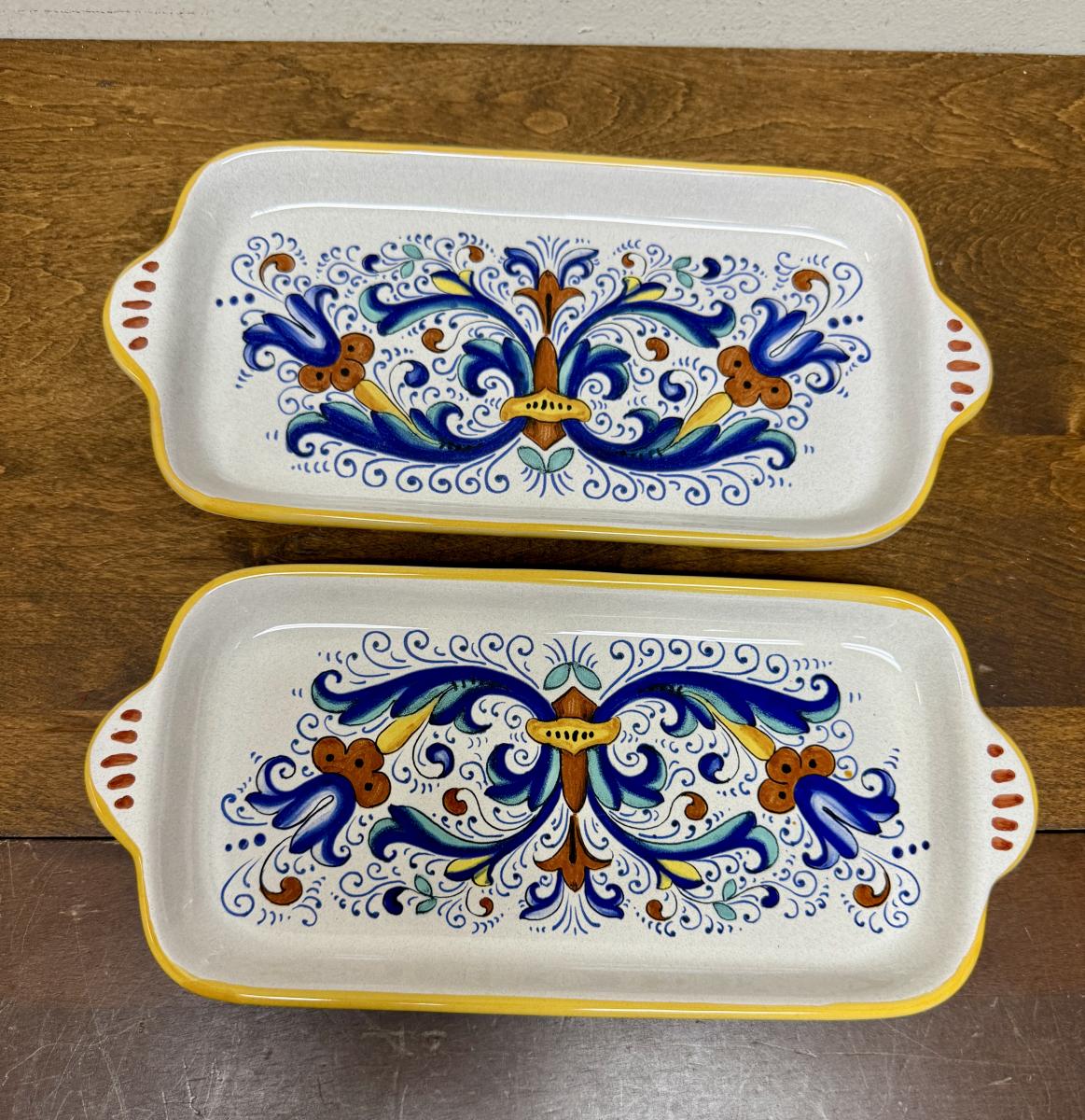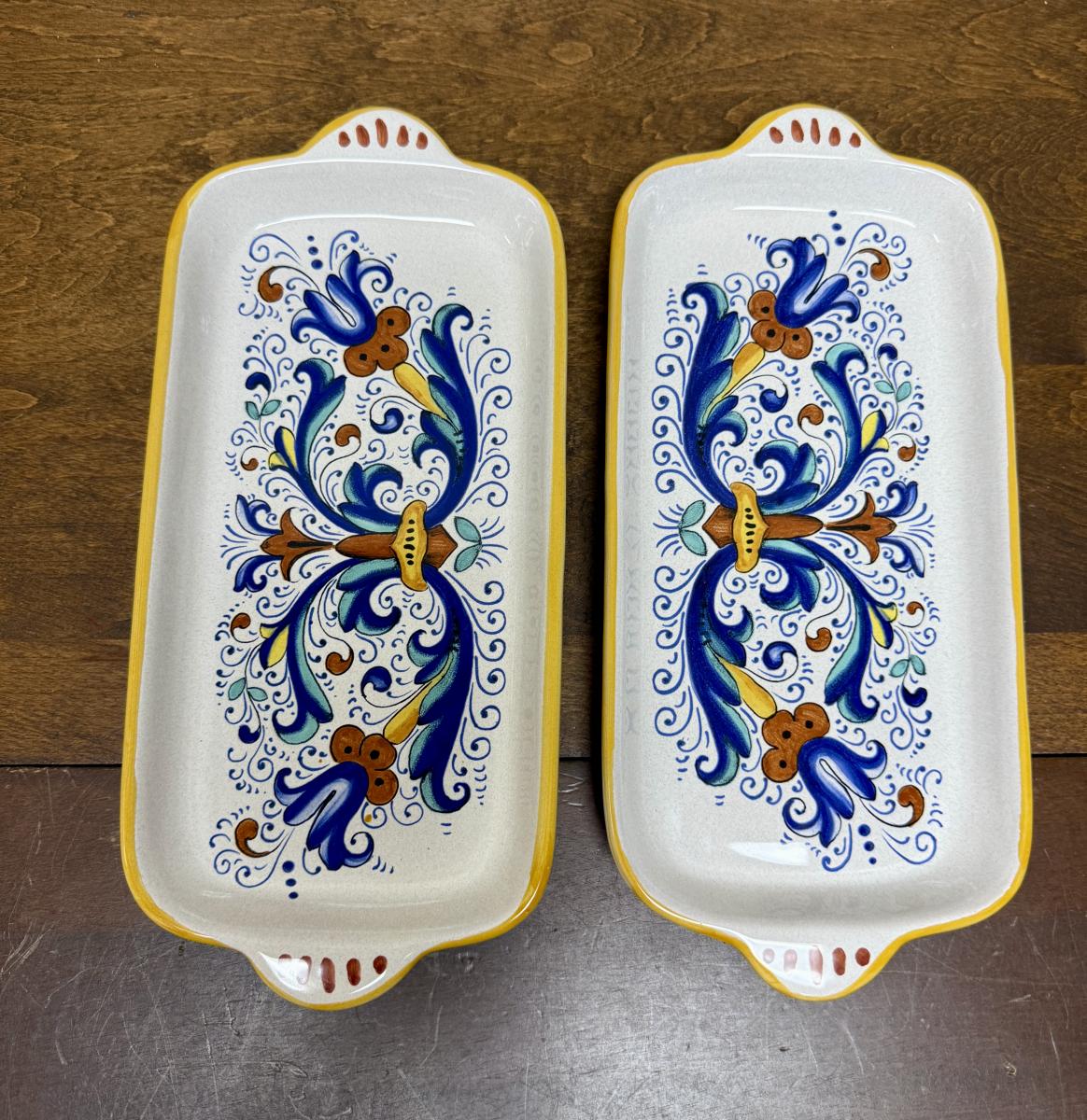 Italian Ceramic Rectangular Canape Plates Floral Design Ceramica Nova Deruta