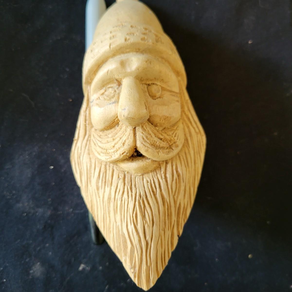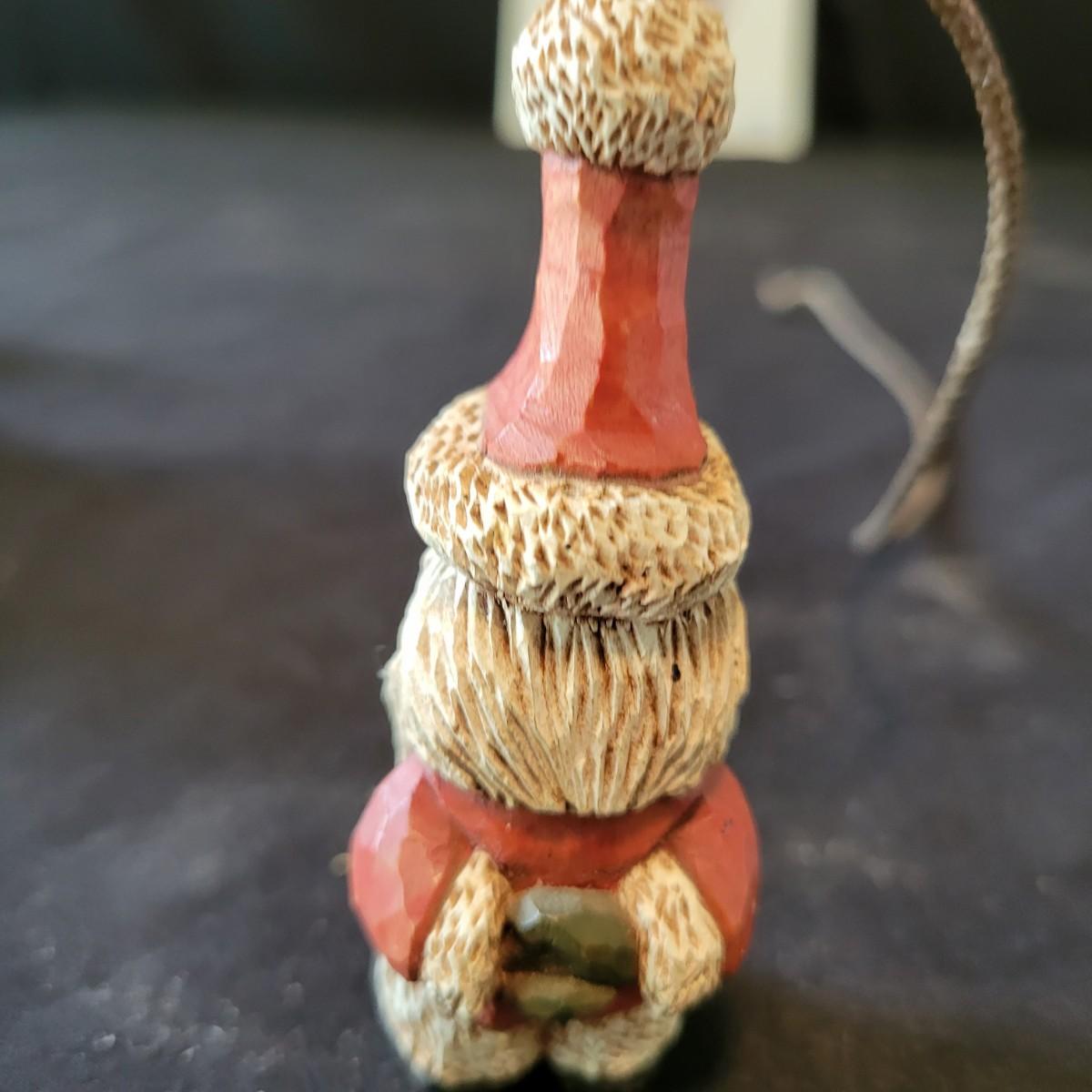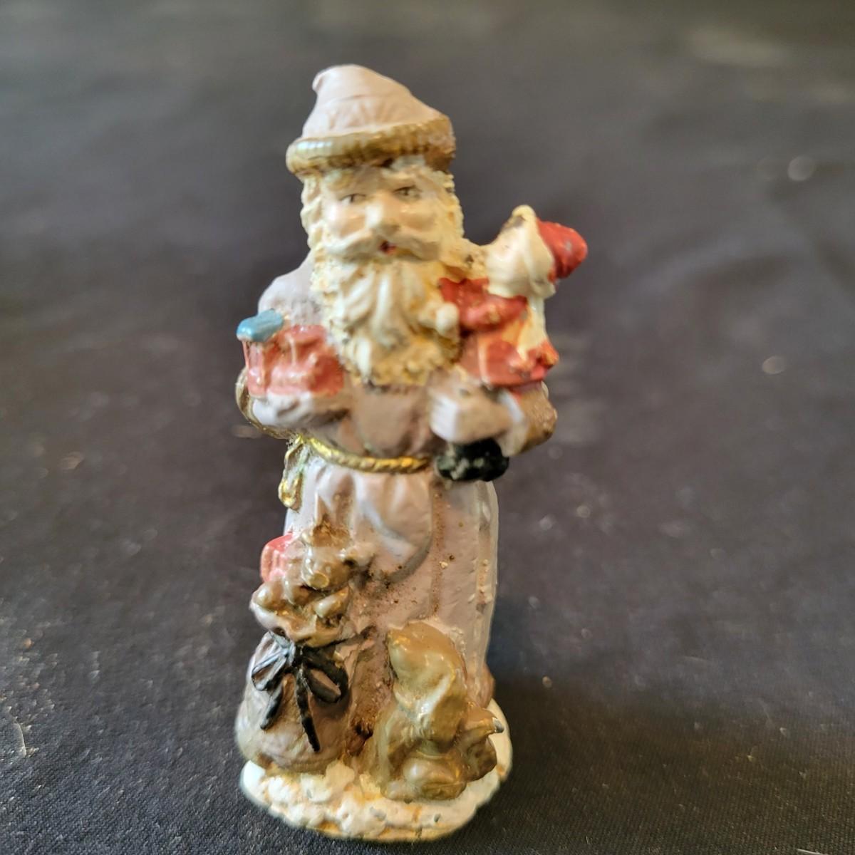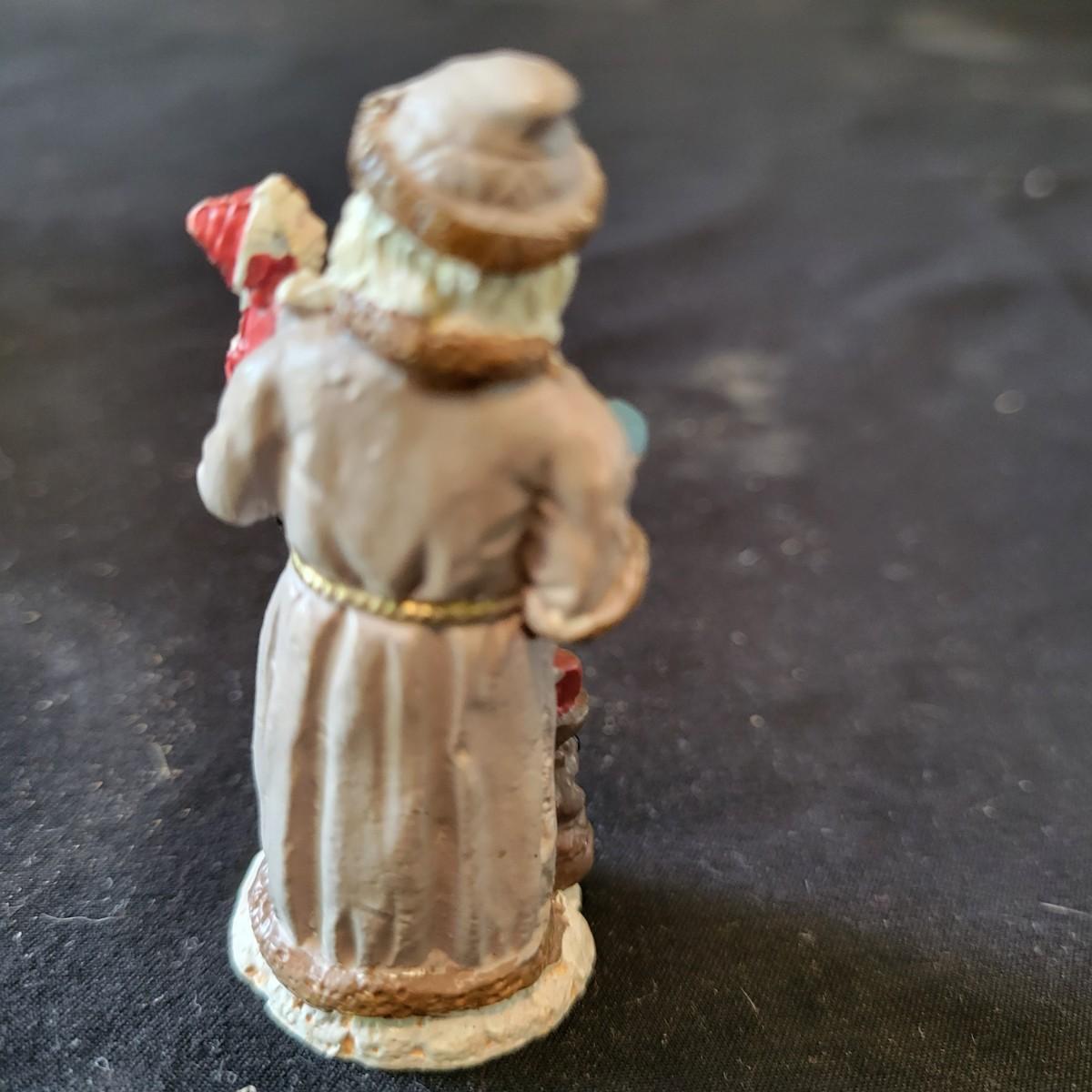 A Rörstrand Santa ceramic tile made in Sweden. Lot also includes 3 carved Santa figurines and 1 figurine, smallest grey colored Santa, made of cast lead and painted. Tile measures approximately 6.5" x 8" Shipping available
