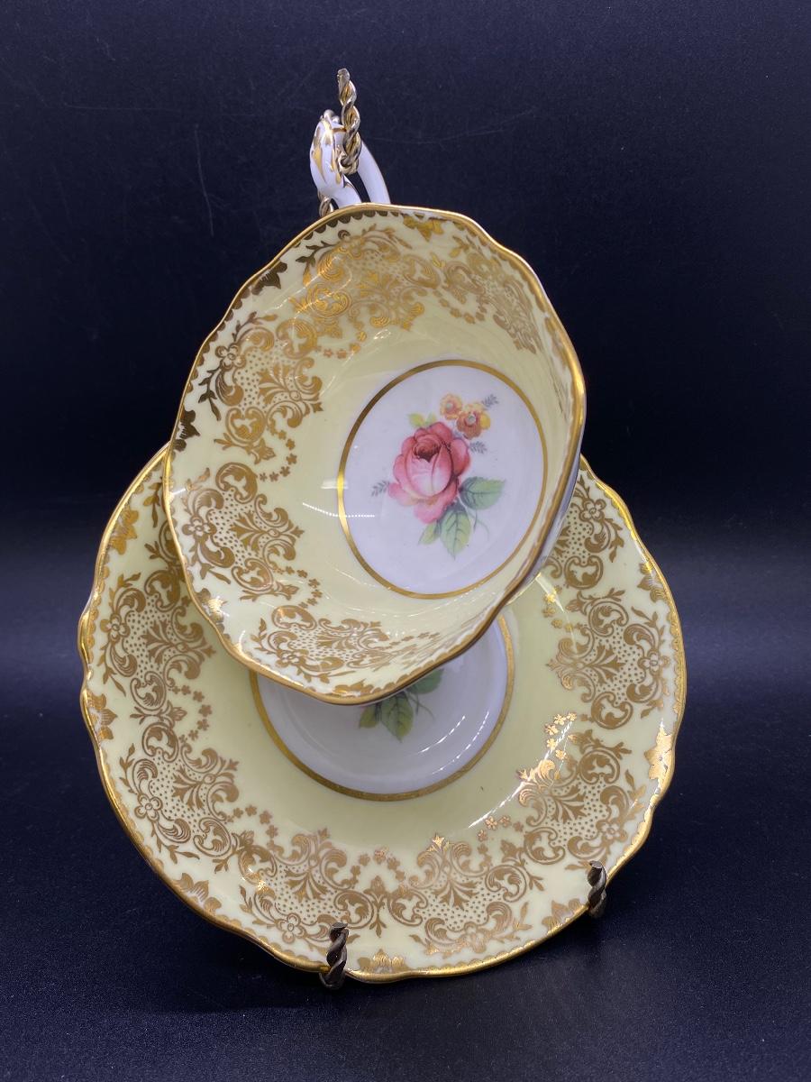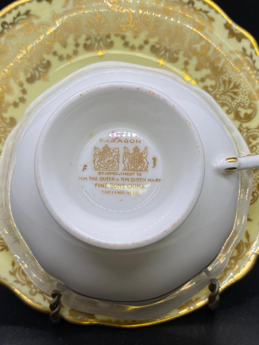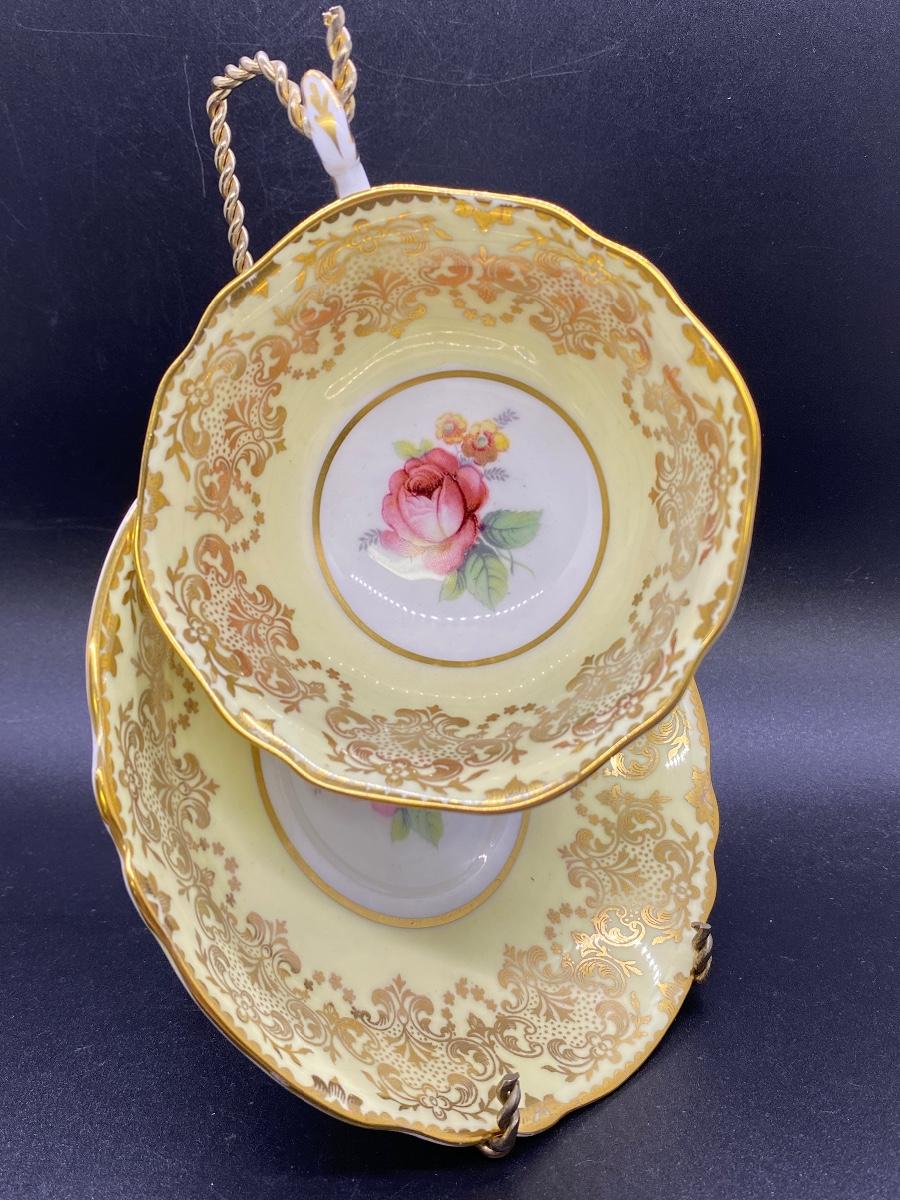 Ornate Gold Gilt Pale Yellow Rose Center Paragon Tea Cup and Saucer