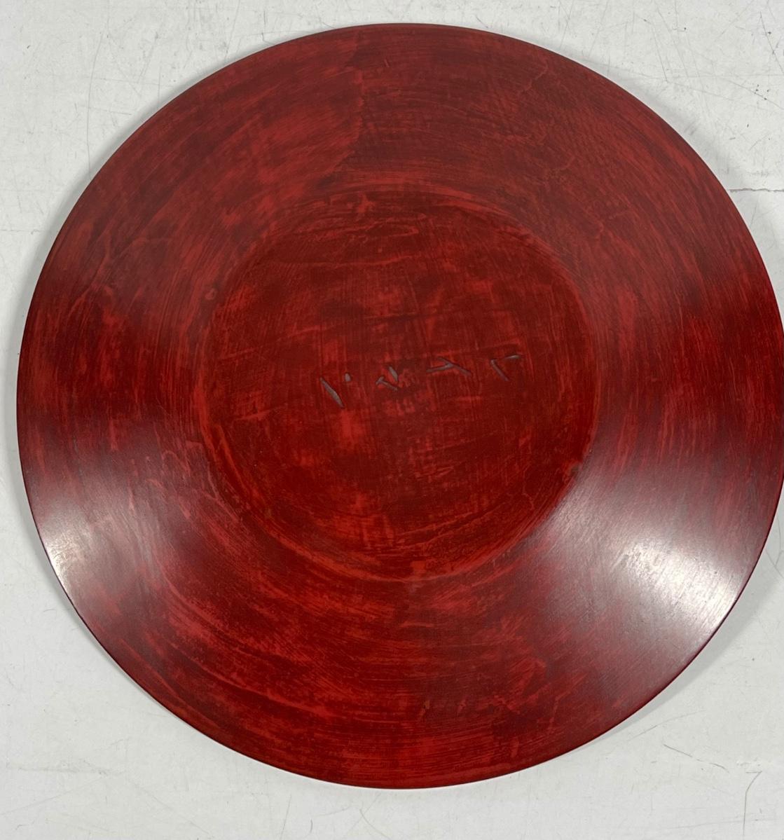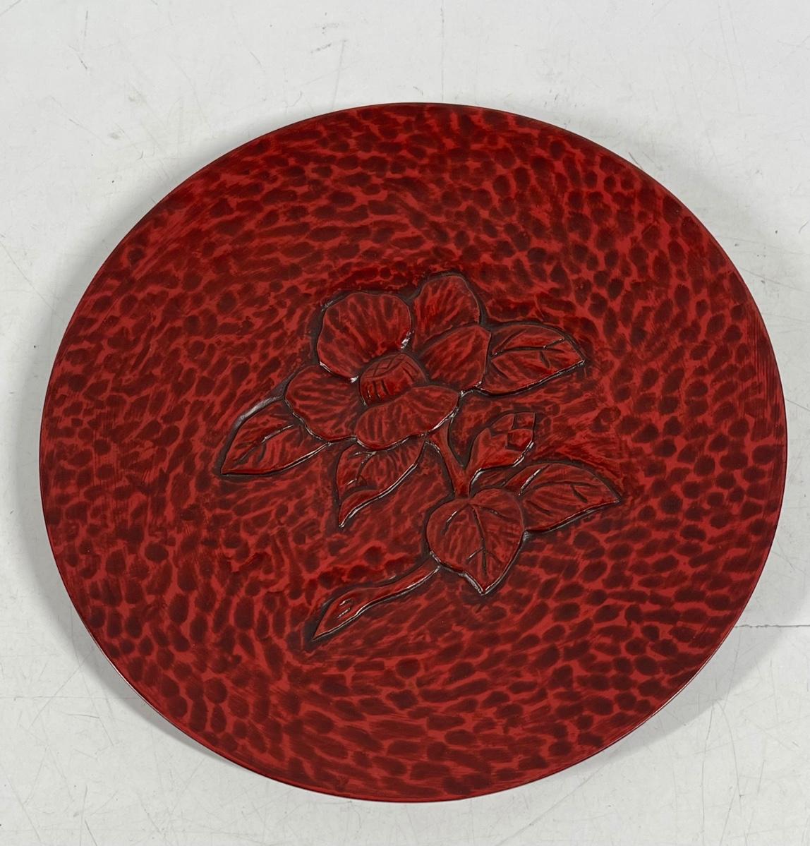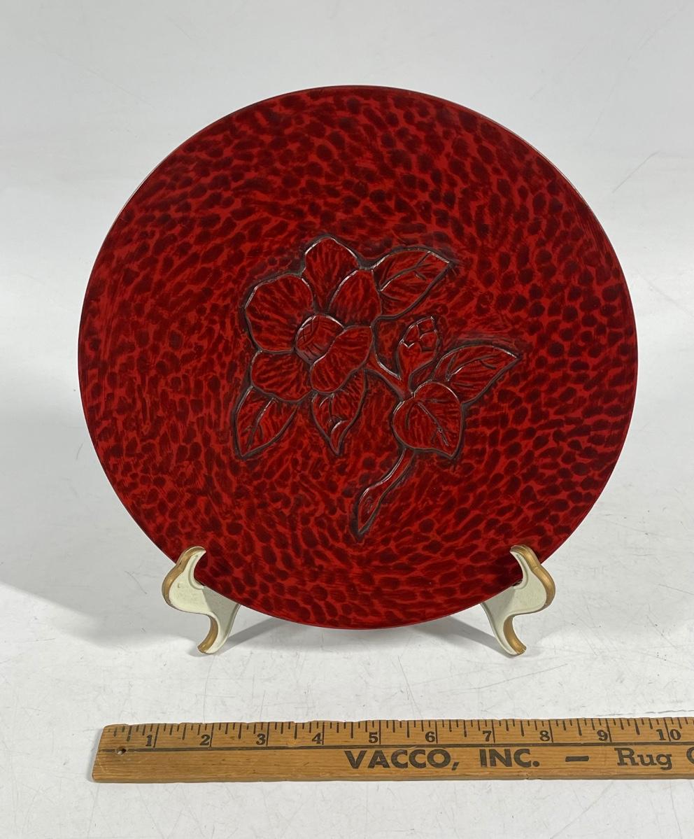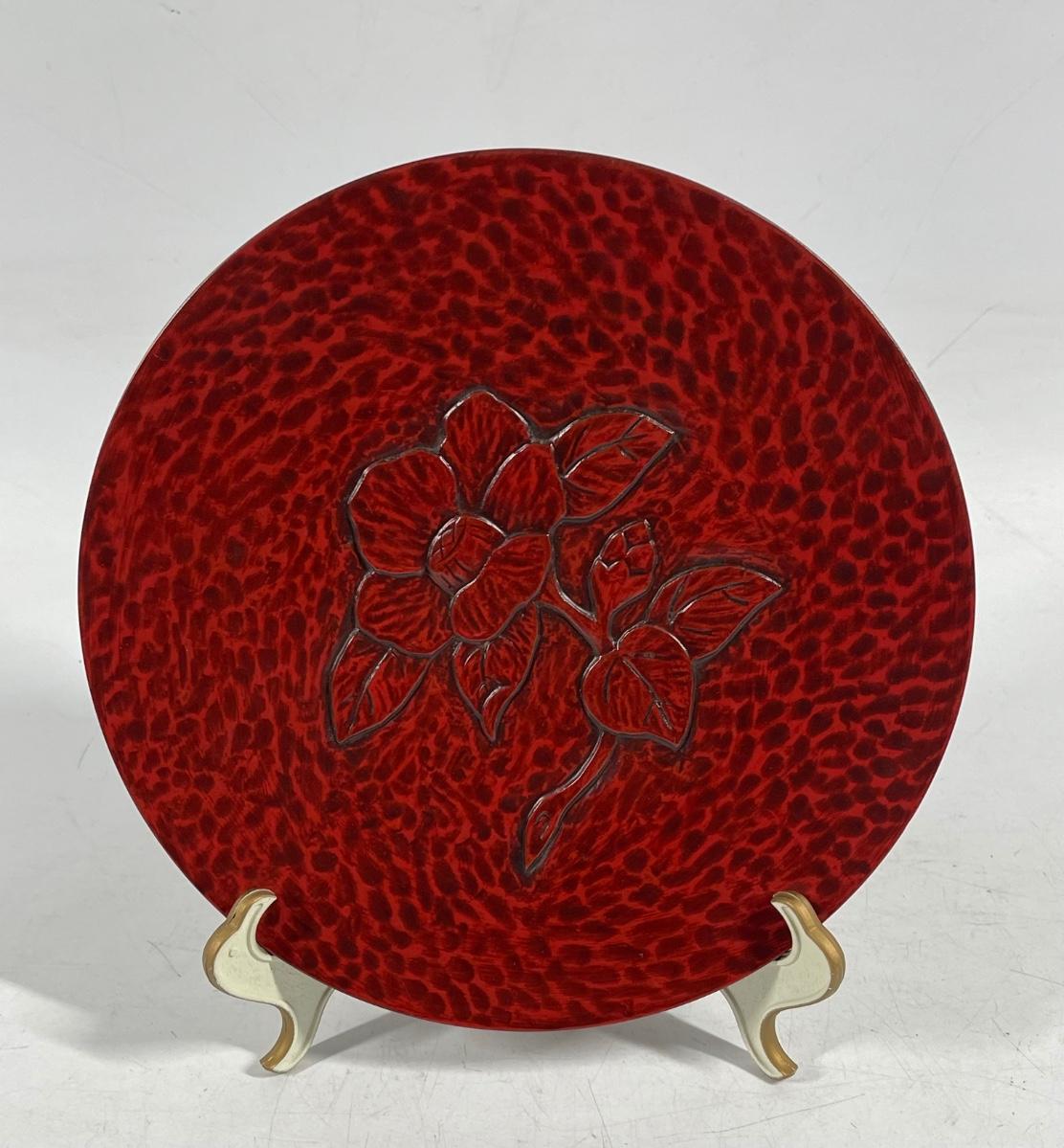 Japanese Traditional Crafts Kamakura-bori Lacquered Wooden Round Display Plate