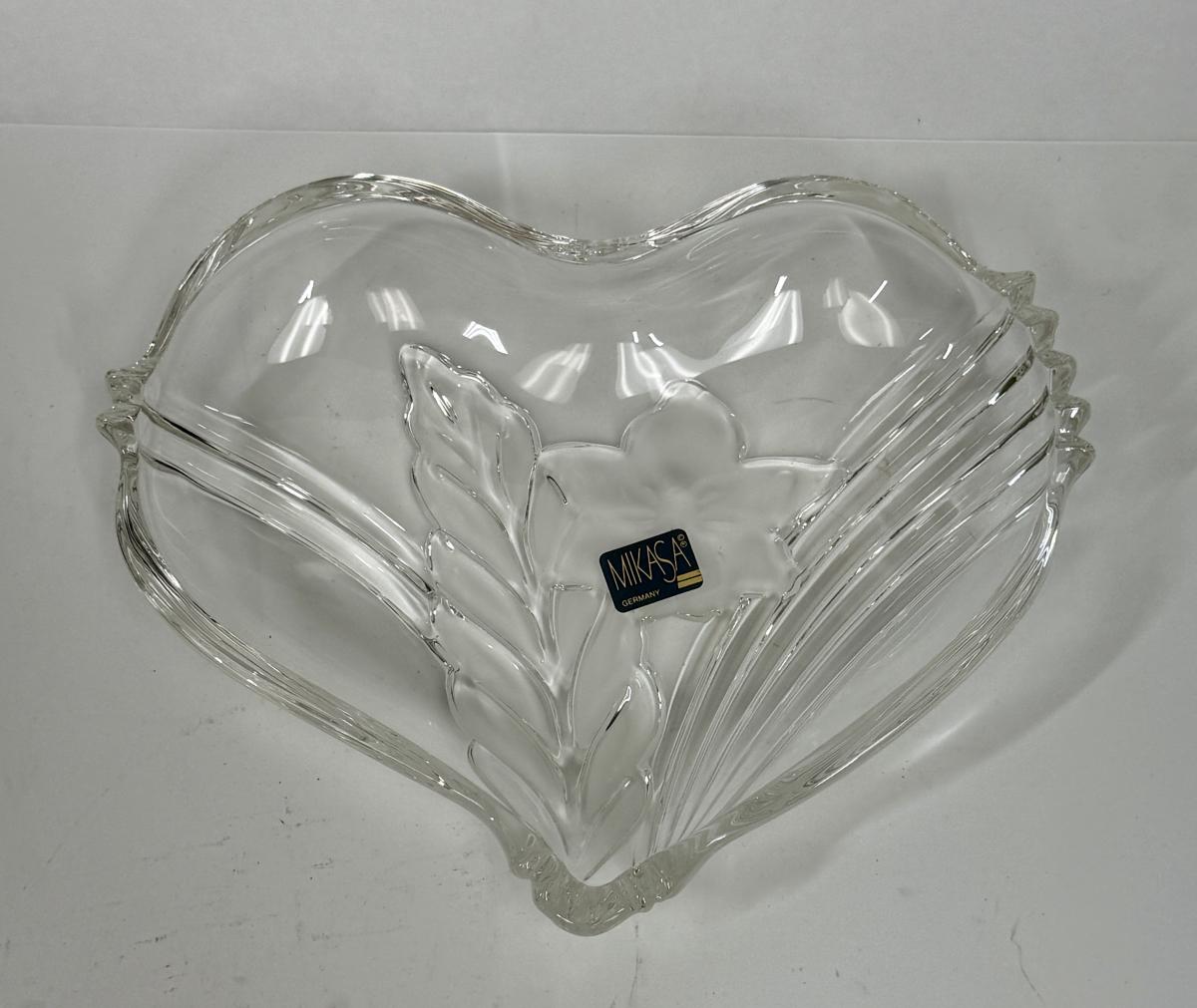 Mikasa Crystal Heart Shaped Dish with sticker attached and original box