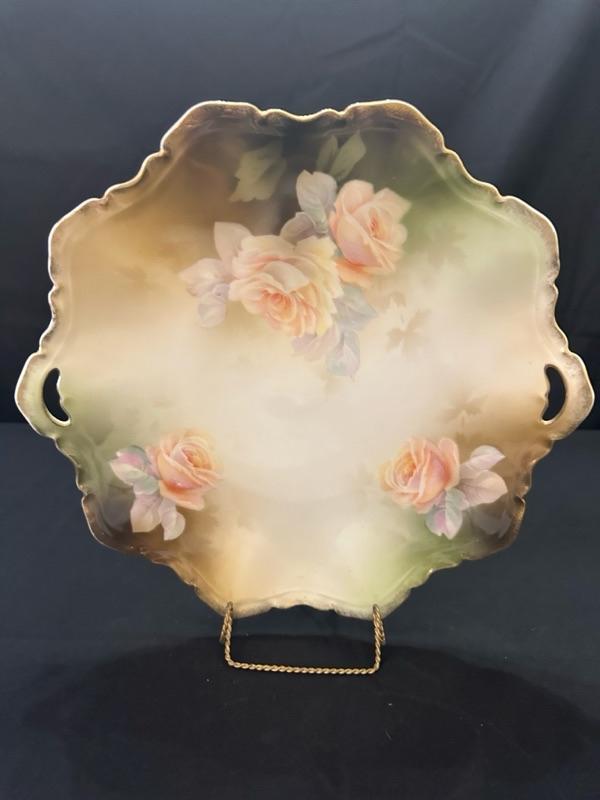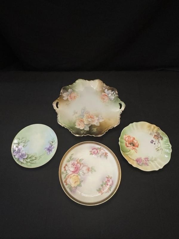 RS Prussia Floral Plate and 3 Floral Patterned Dishes