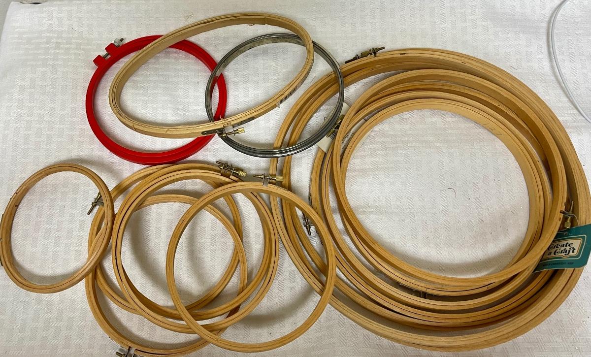 Vintage Lot of Wooden & Metal Hoops for Stitchery Cross Stitch Fabric Stretching Various Sizes.