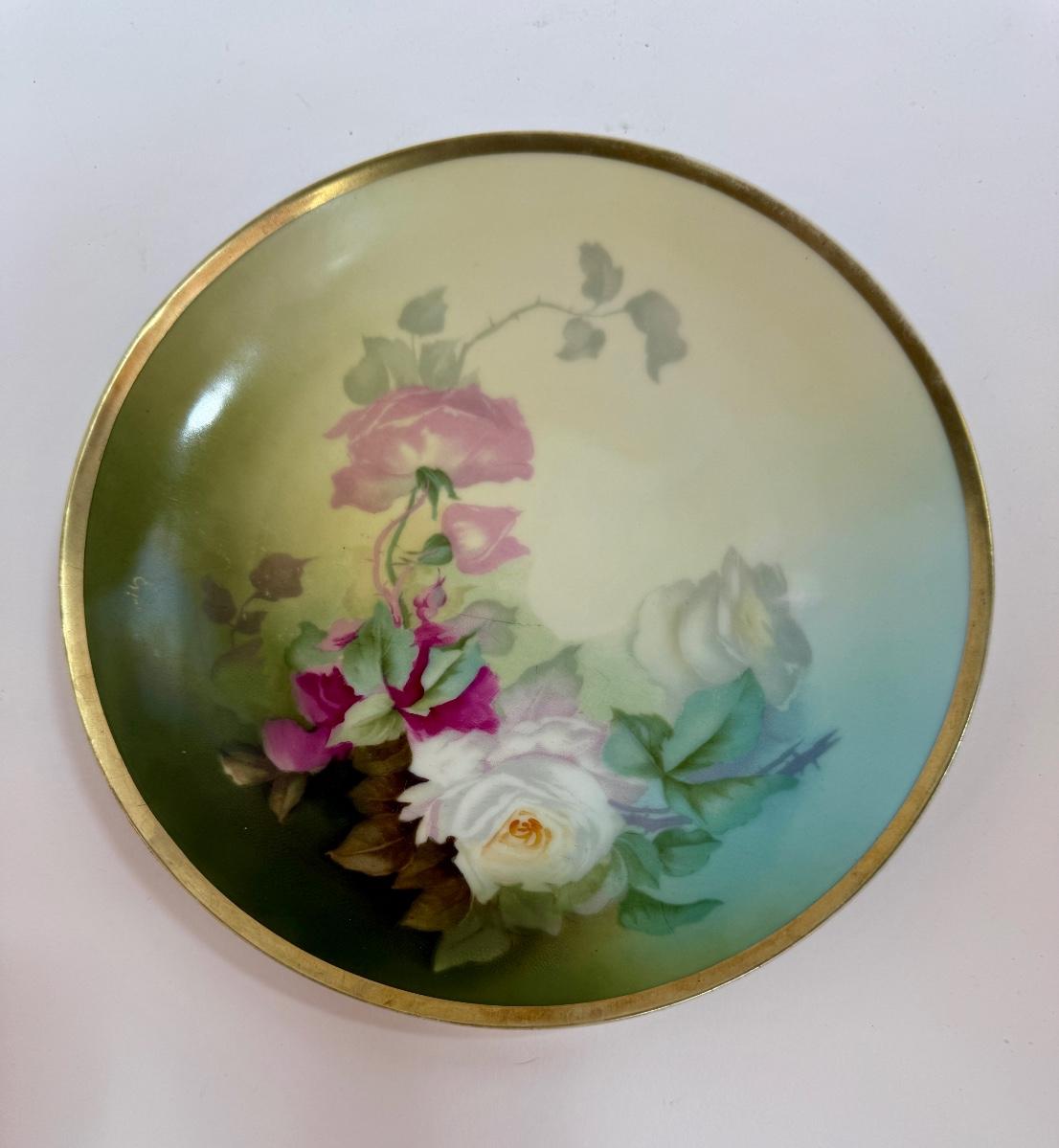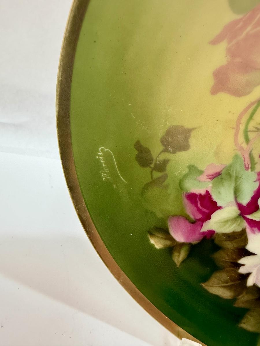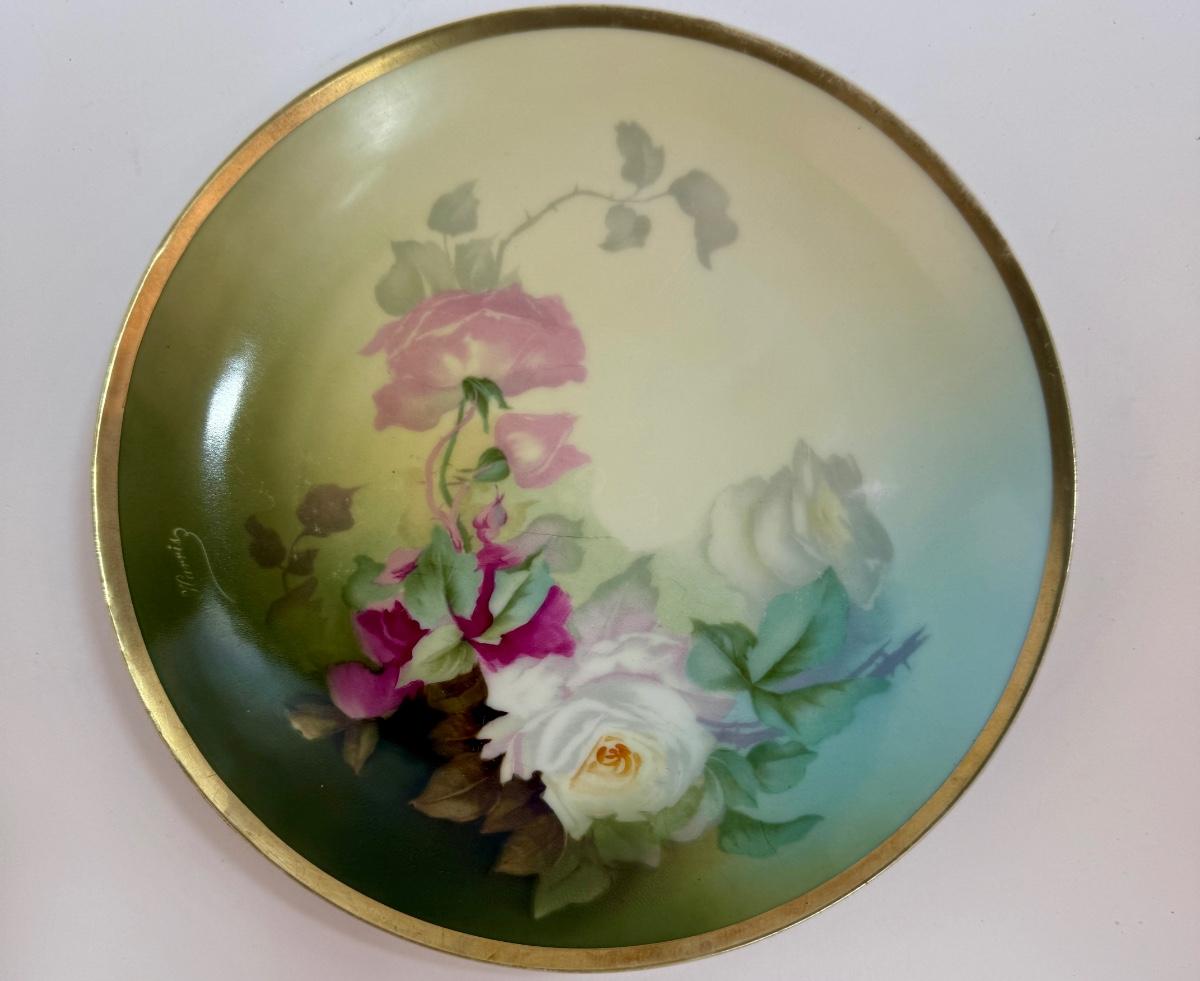 Antique Thomas Sevres Bavaria hand-painted roses Porcelain Plate signed
