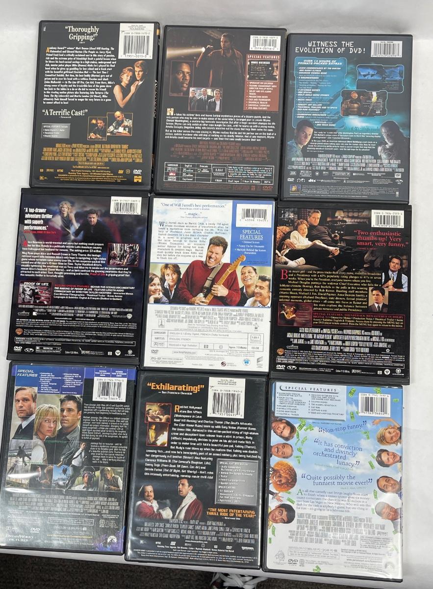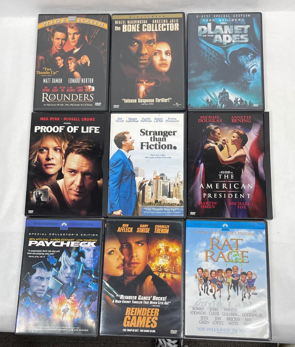 Lot of 9 DVD movies: Reindeer Games, Rat Race, Proof of Life, The American President, Stranger Than Fiction, and others. All in good condition.