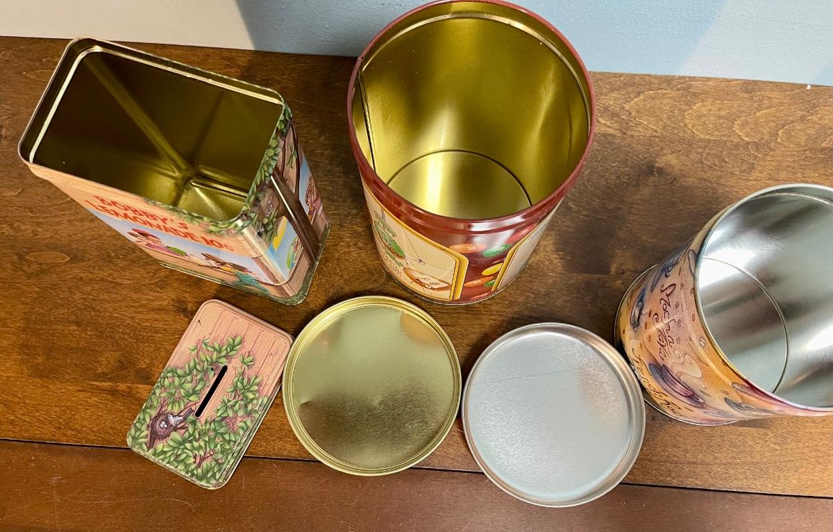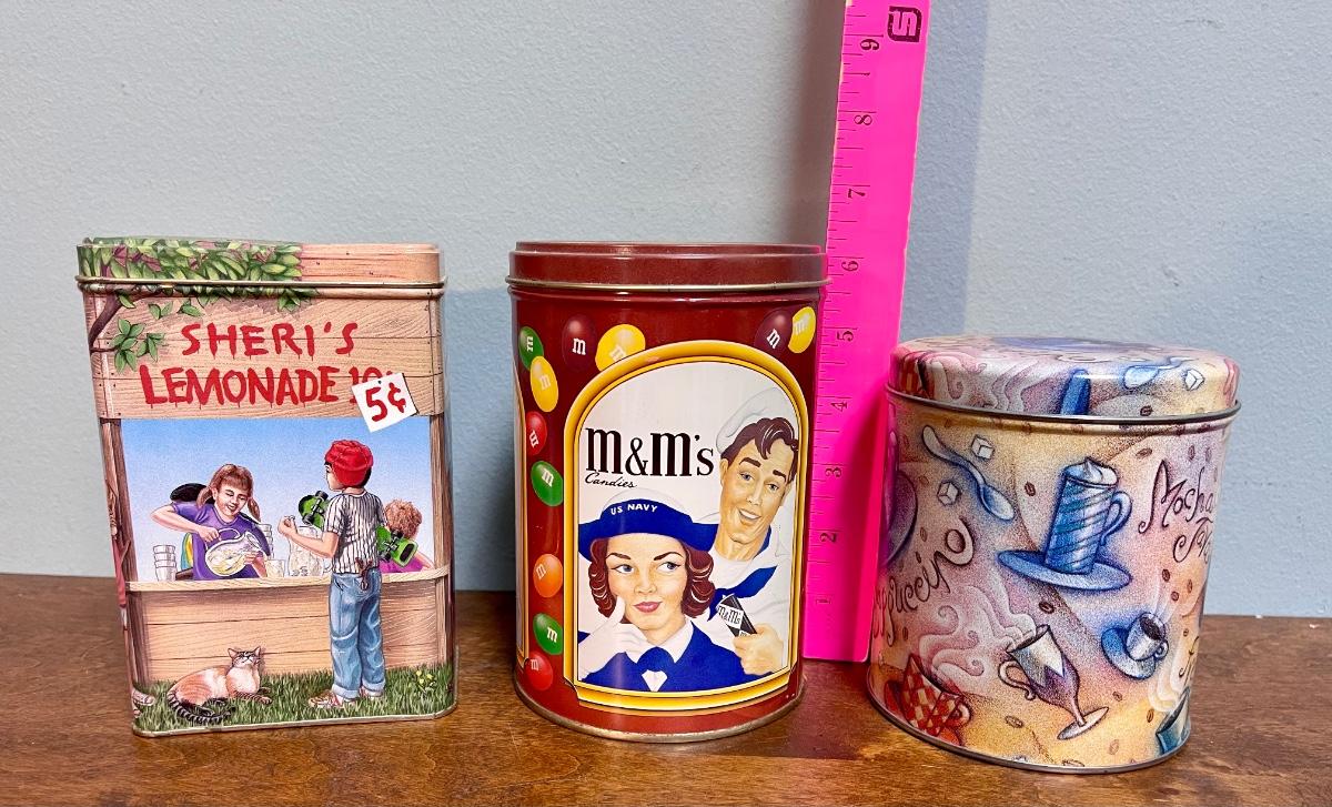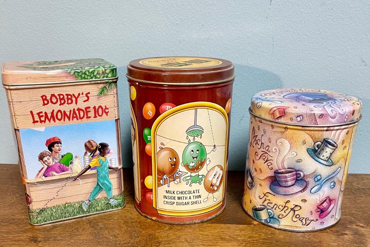 Vintage Tin Can Lot - M&M, Coffee, Lemonade bank