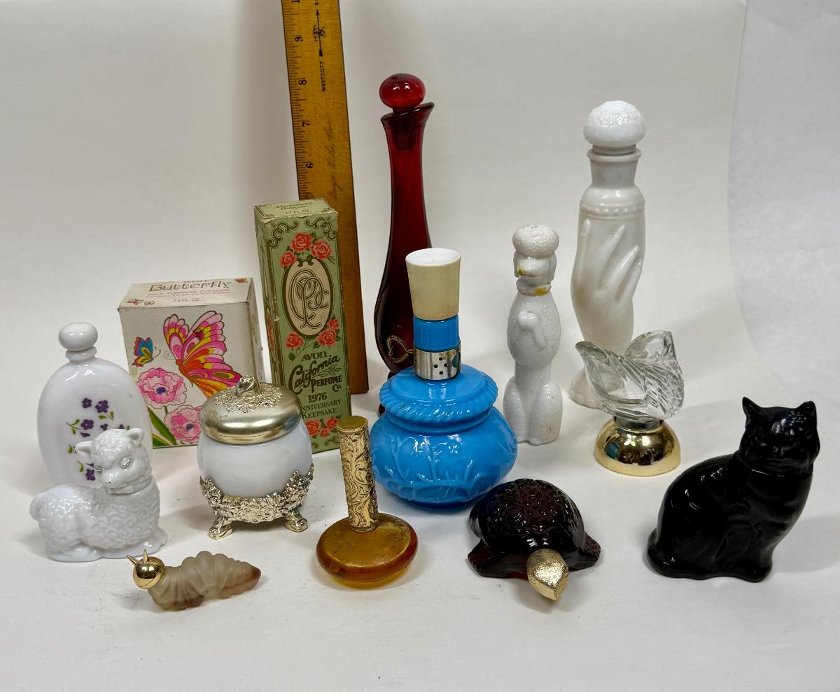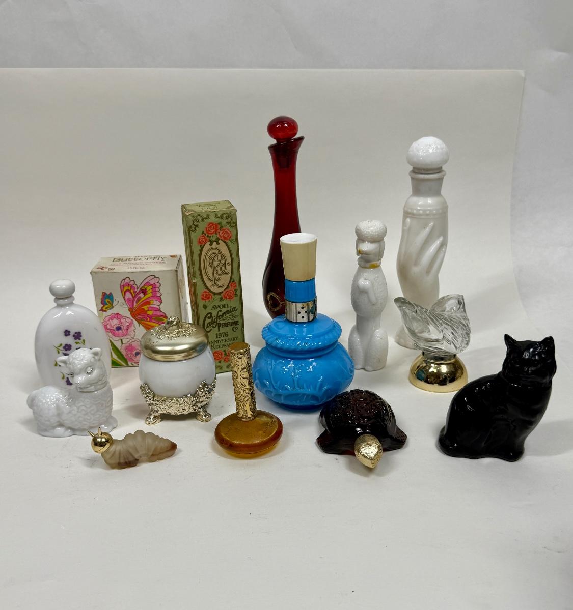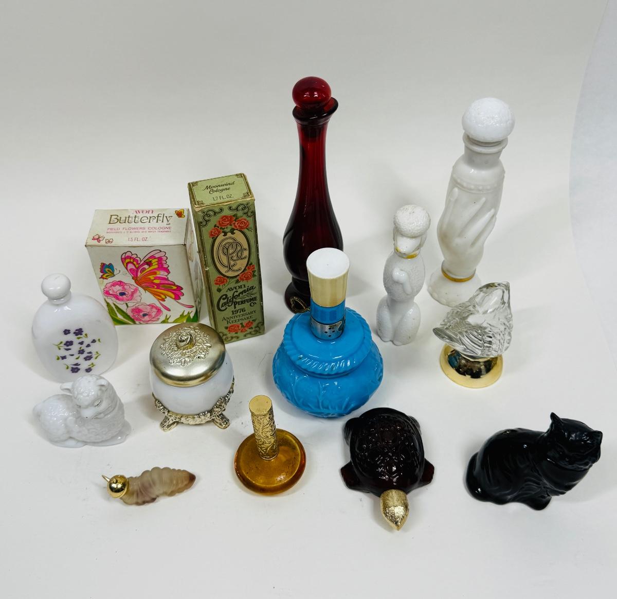 Avon Perfume Bottle Lot - turtle cat catapiller lamb parakeet Poodle and more
