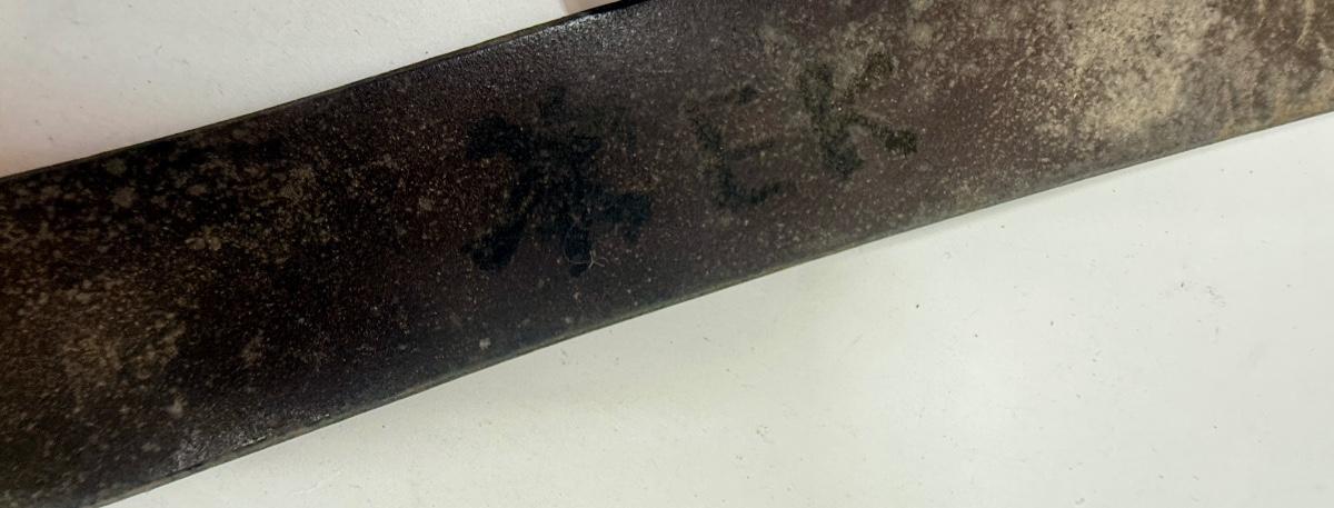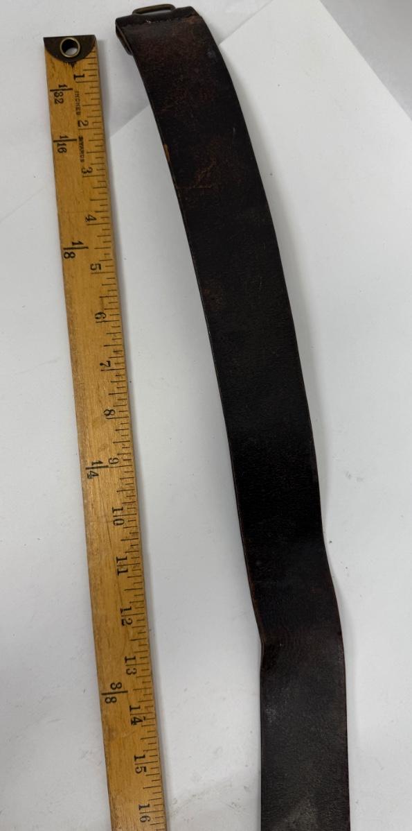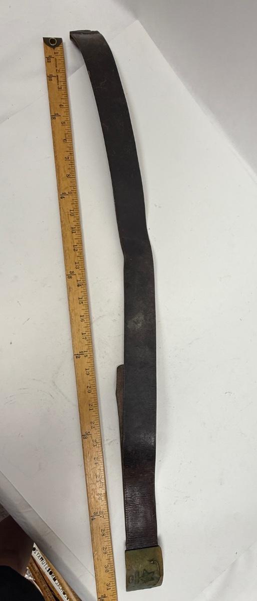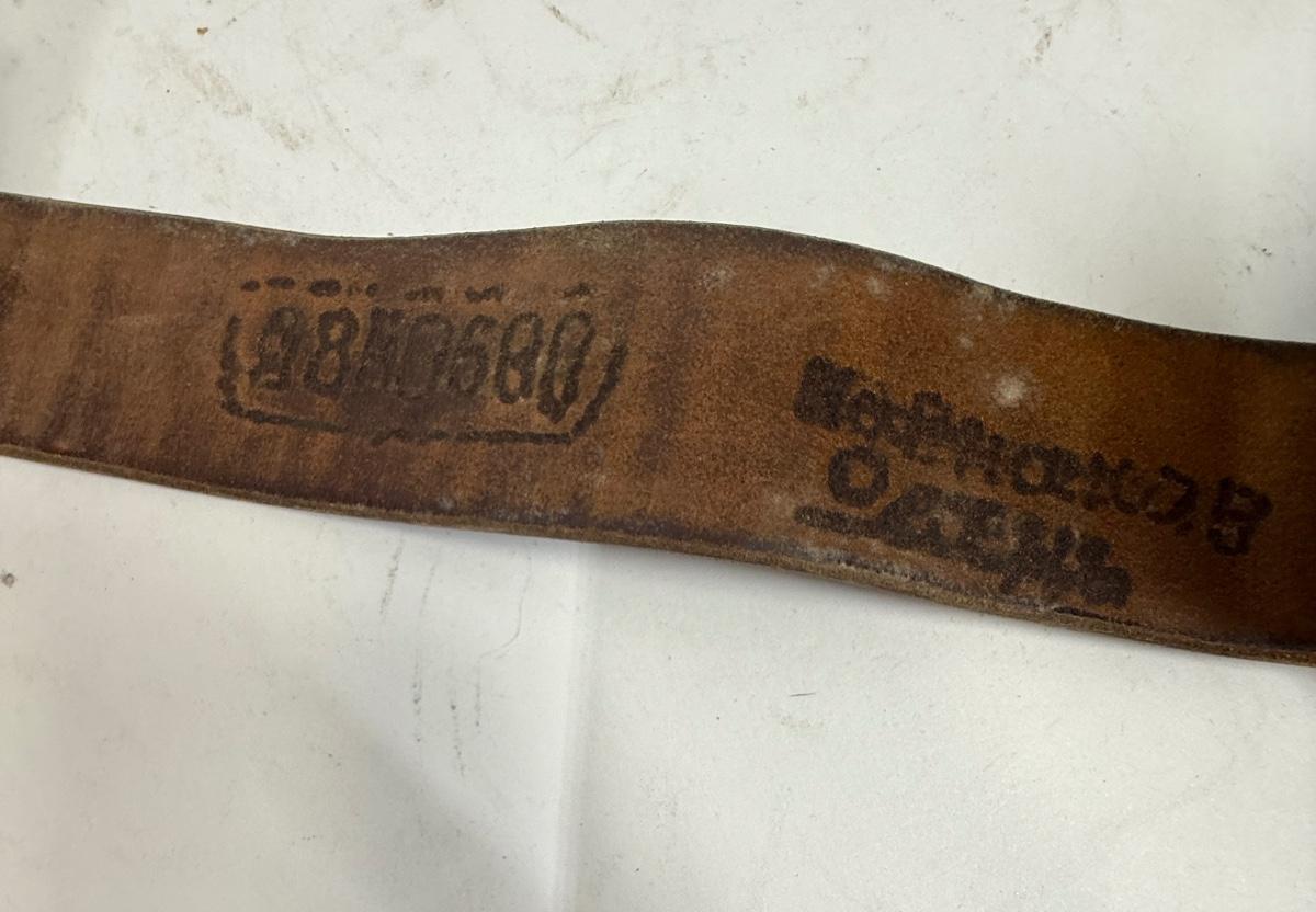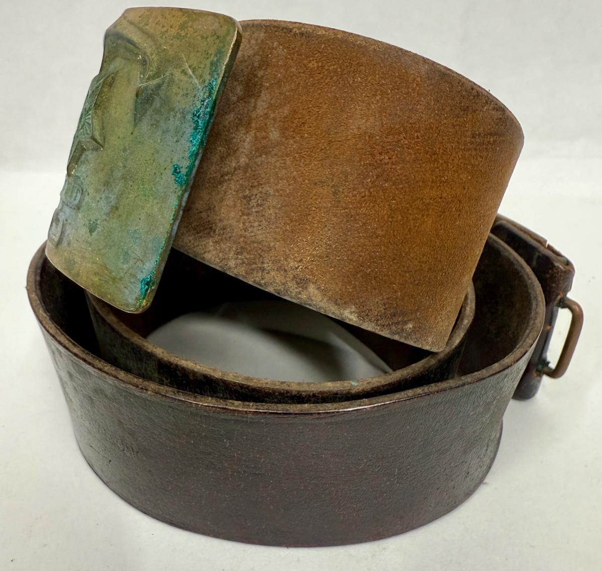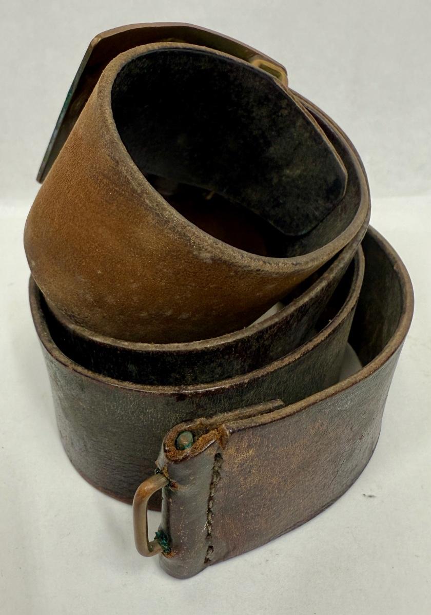 Age unknown. Buckle has some green corrosion. Belt was stored in a rolled-up manner, but is intact with no splits or fraying.