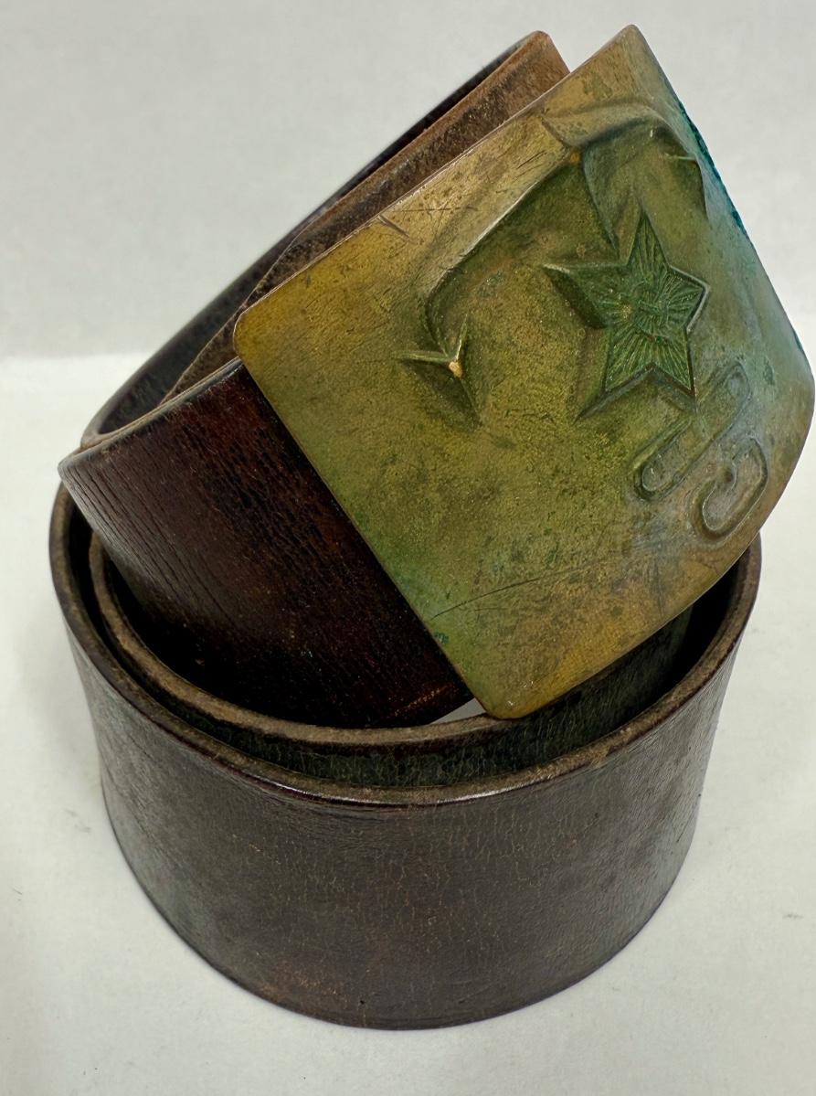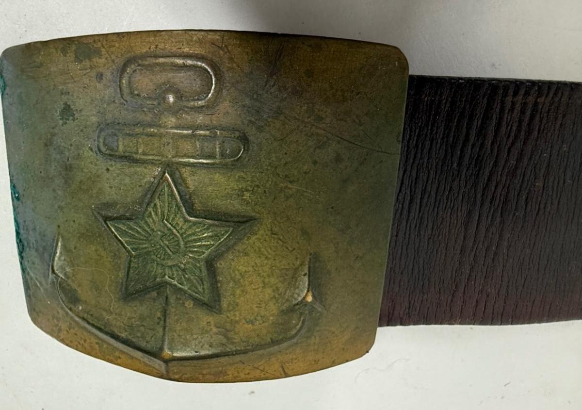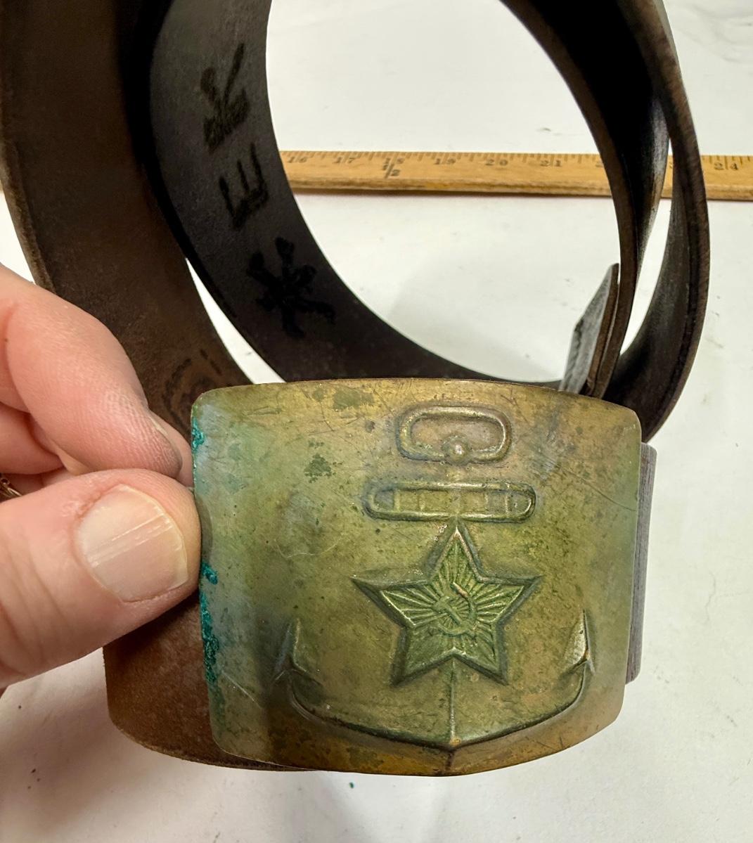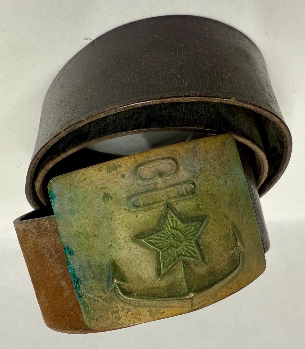 Vintage USSR Russian Soviet Navy Sailor Military Leather Belt with Brass Buckle