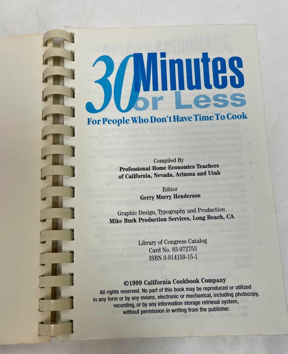 Cookbook: 30 minutes or Less Spiral Bound Soft Cover