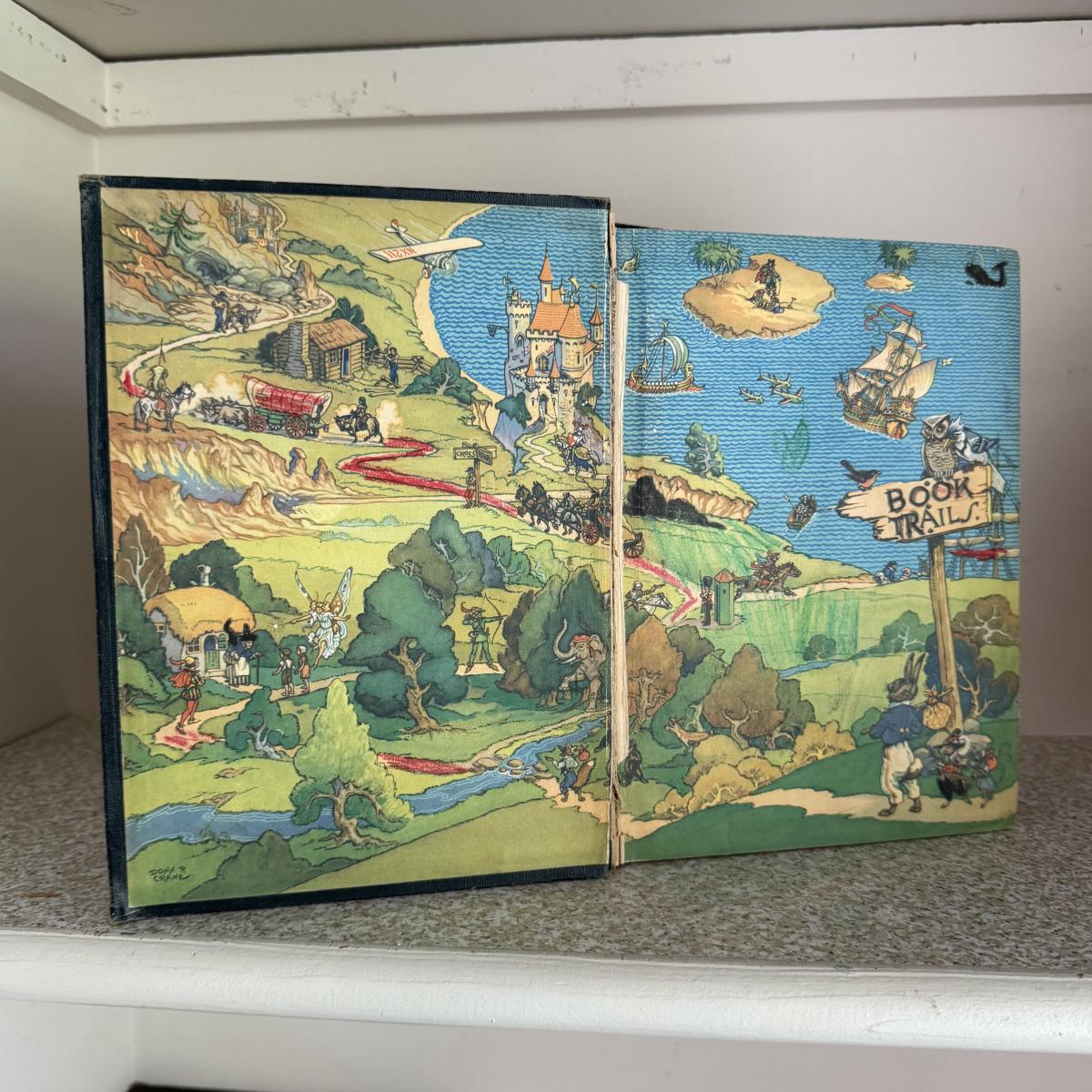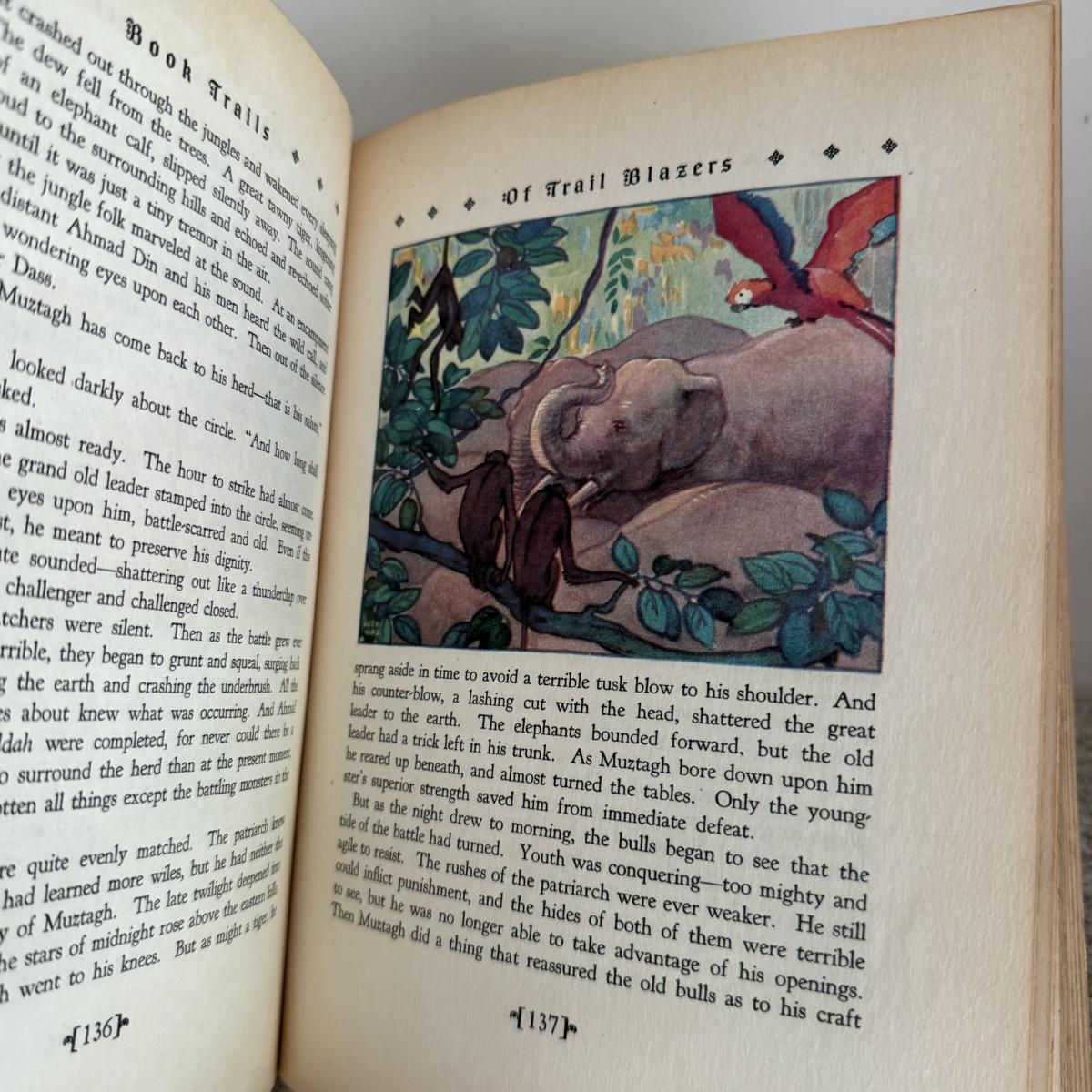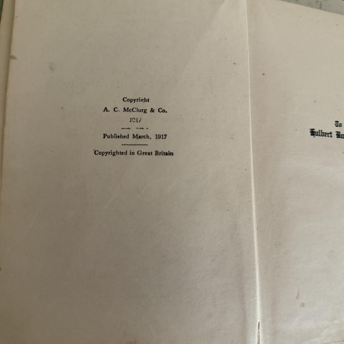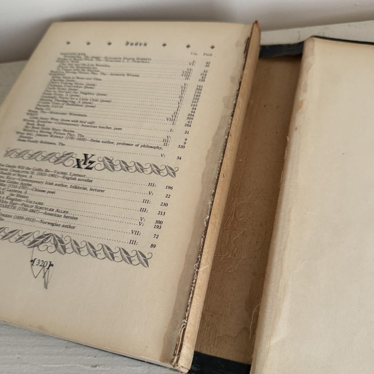 11 hardcover antique books. The collection includes the translation of the first and second editions of “Rubaiyat of Omar Khayyam”, a five book set of Black’s Readers Service Company books including The Works of Emerson, Ibsen, Tolstoi, Hugo, and Wilde, two “Tarzan” books, and more. Please see photos for inventory and details. The books do show some wear. Some have loose pages and damaged binding. “Book Trails” has crayon drawn inside.