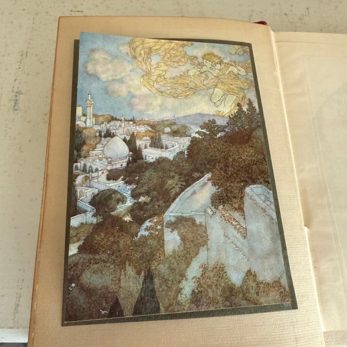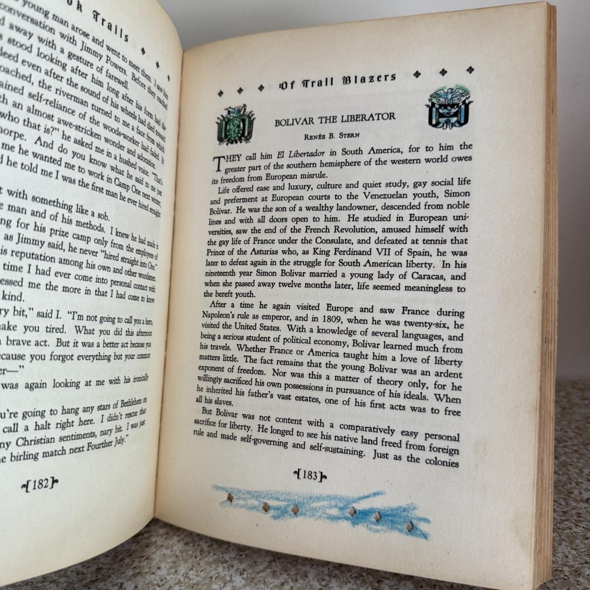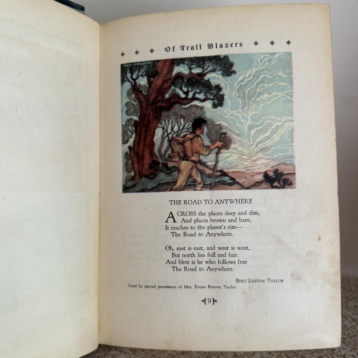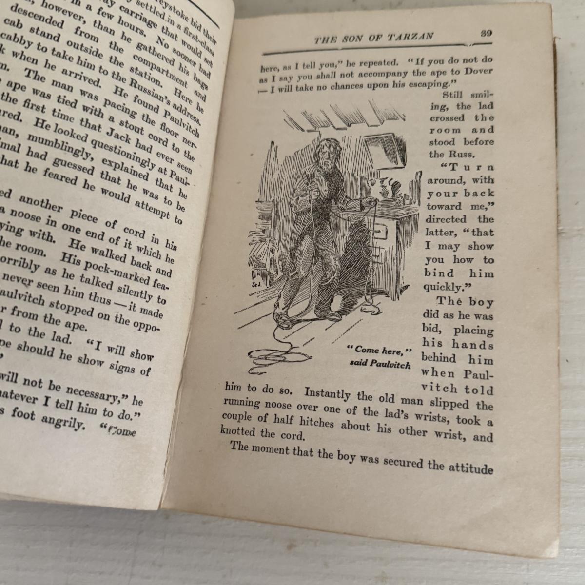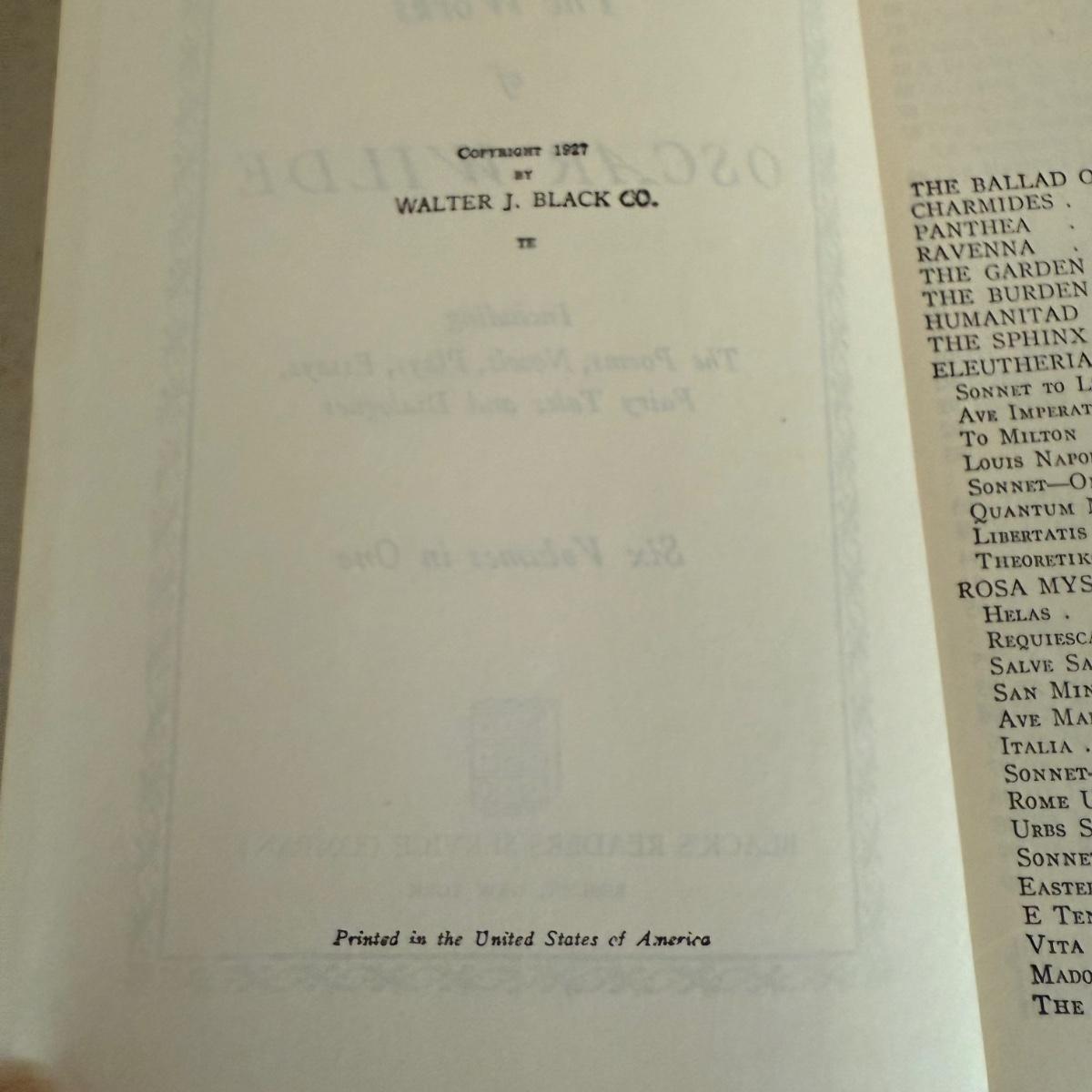 11 hardcover antique books. The collection includes the translation of the first and second editions of “Rubaiyat of Omar Khayyam”, a five book set of Black’s Readers Service Company books including The Works of Emerson, Ibsen, Tolstoi, Hugo, and Wilde, two “Tarzan” books, and more. Please see photos for inventory and details. The books do show some wear. Some have loose pages and damaged binding. “Book Trails” has crayon drawn inside.