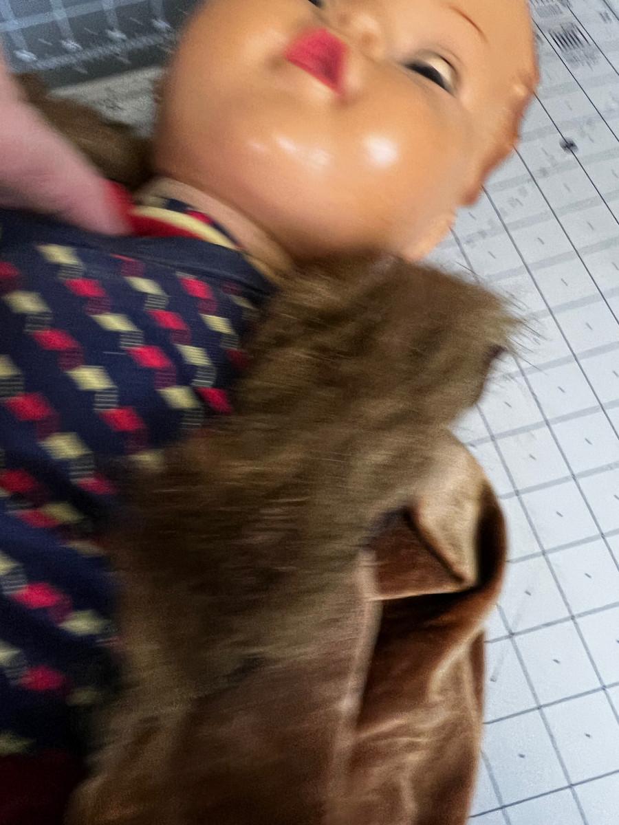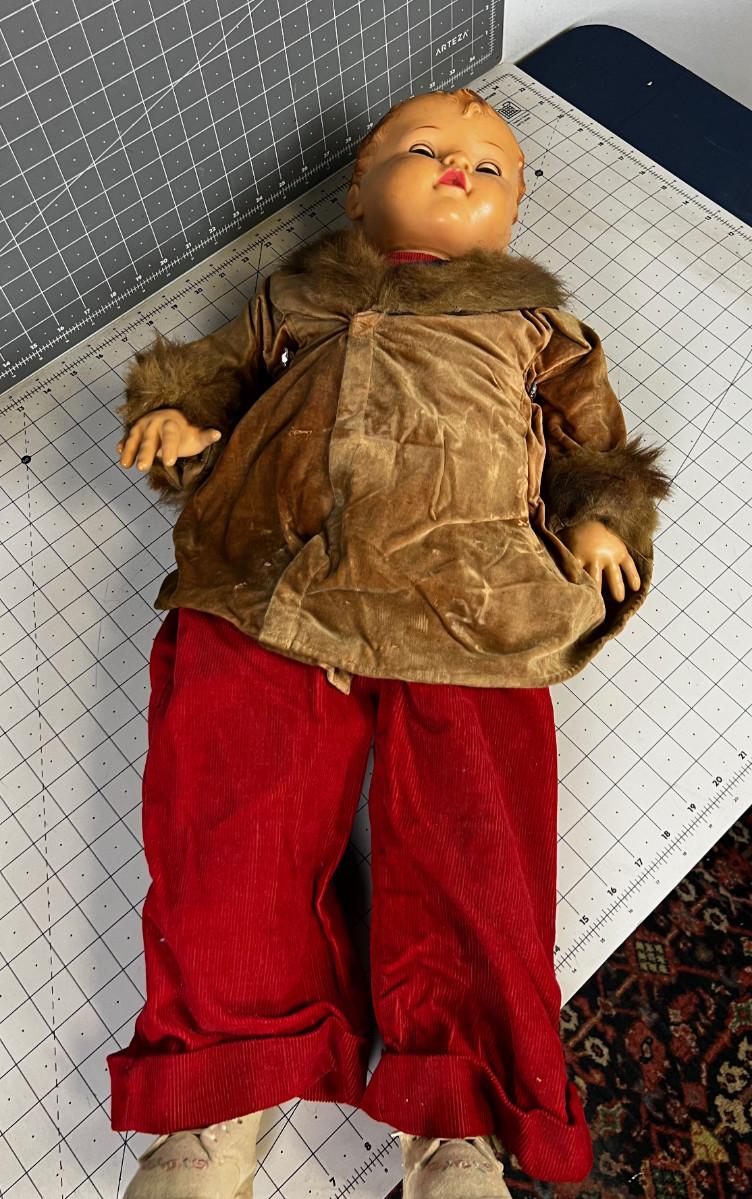 His Head is becoming detached, IDEAL Doll. Doll is not in good Condition. But probably very collectible he is quite Large.'