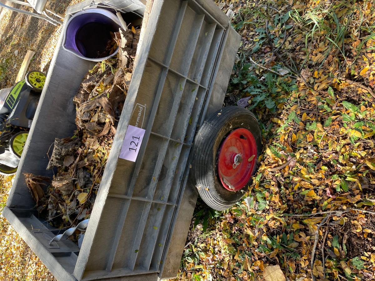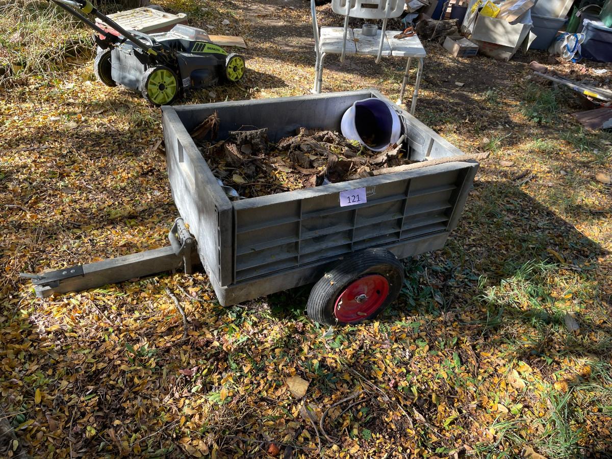 Made for riding lawn mower. Tires need replace. Good heavy duty piece!