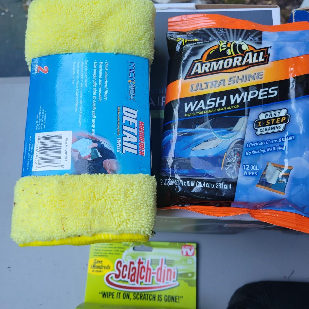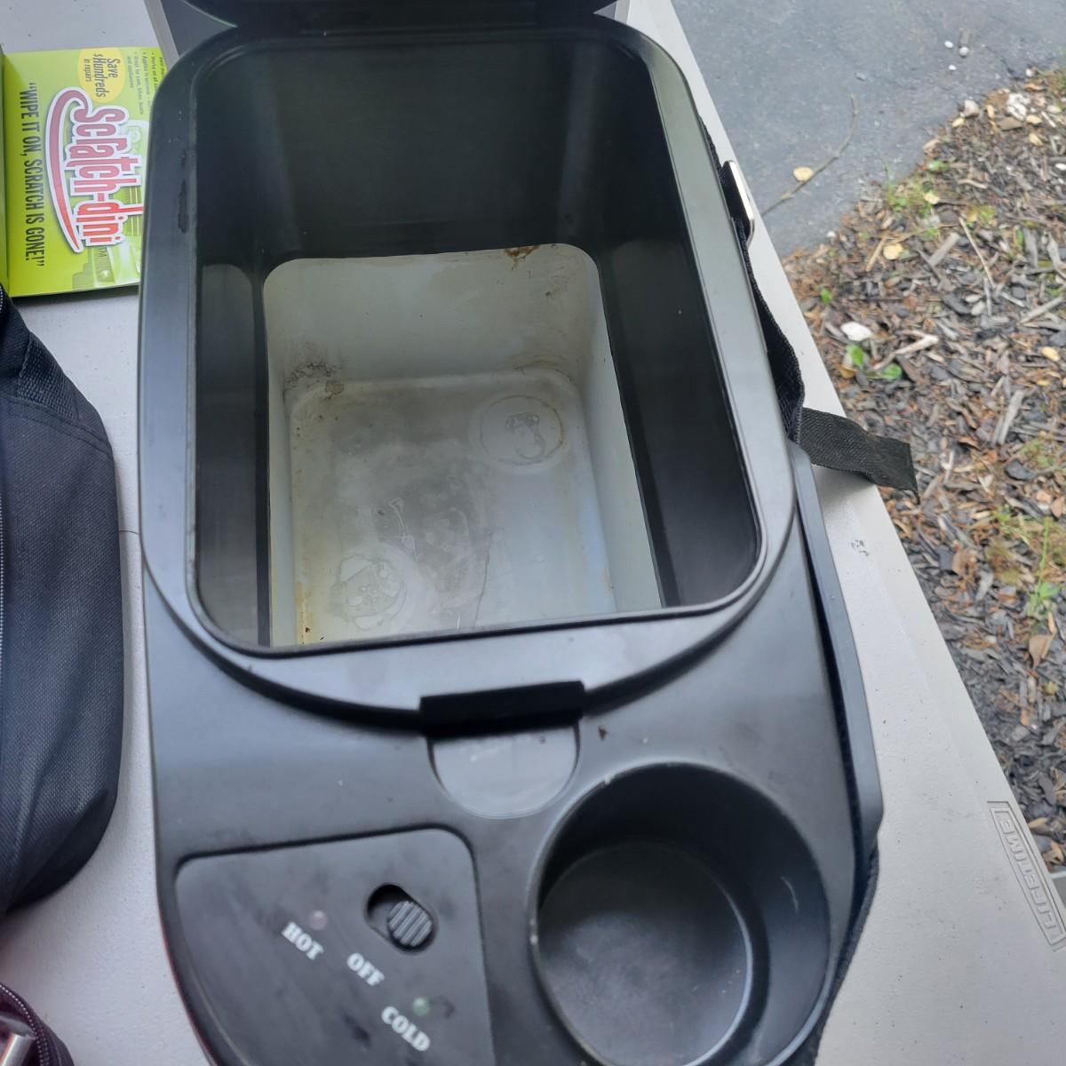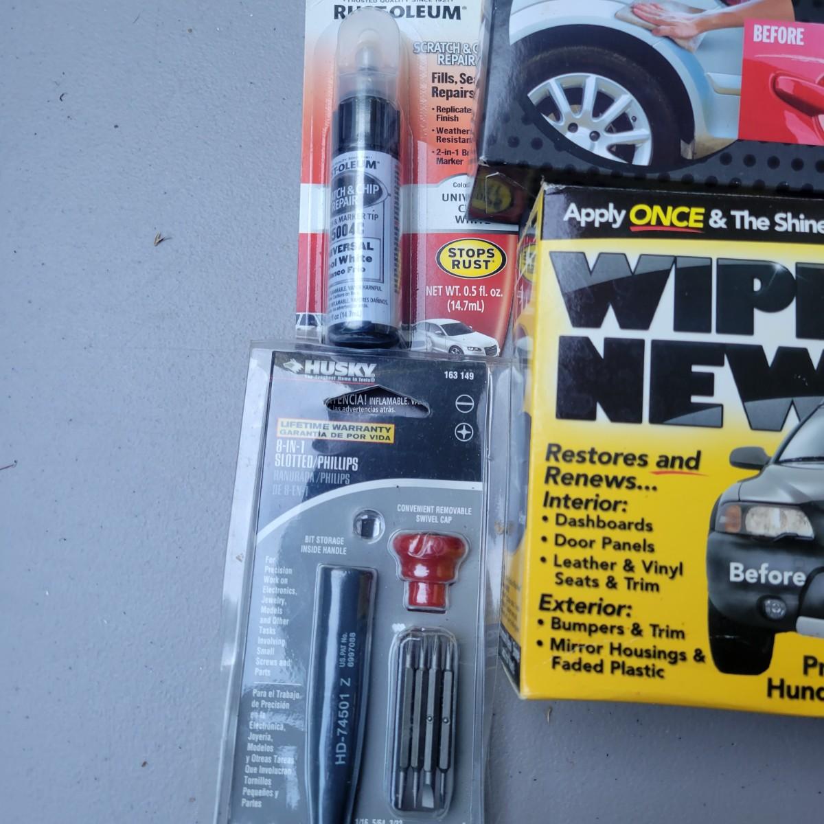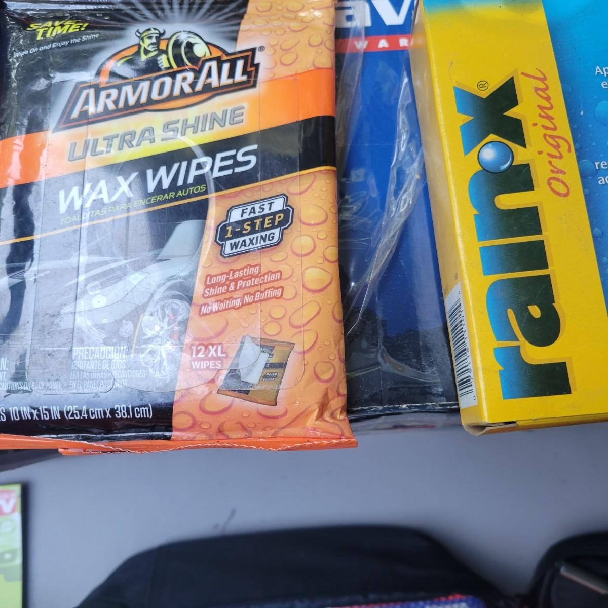 Rubbermaid 6 liter travel cooler and warmer. In original packaging but used. Did turn on when tested. Lux 12v multi function vacuum new and in original packaging. Weather Handler roadside emergency kit. New and unused. Lot also includes wipes, scratch remover and additional items. Local pickup only