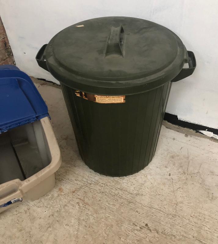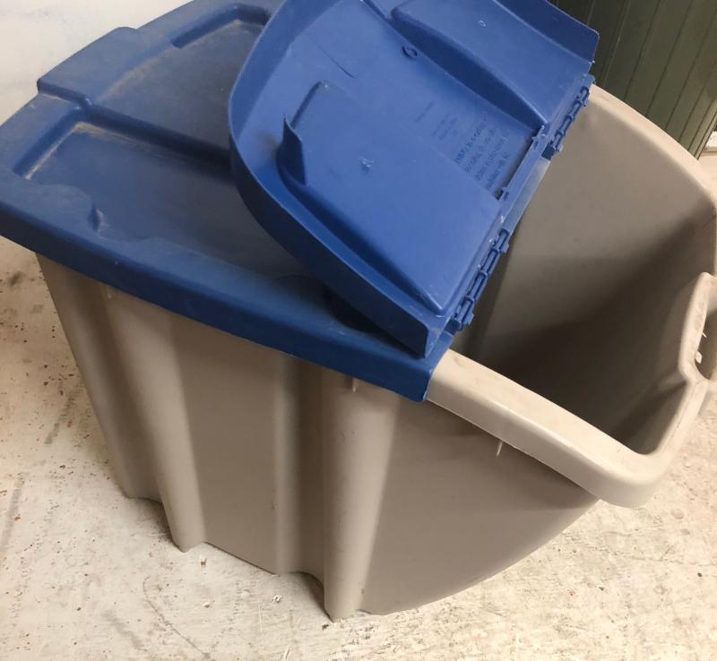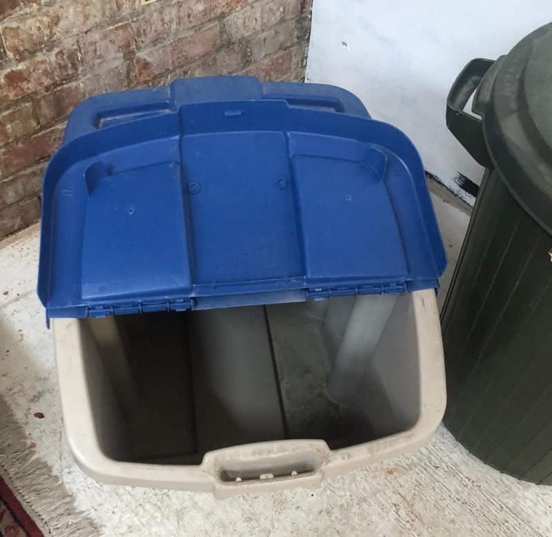 New condition on this Rubbermaid 20 gallon lidded garbage can and 18 gallon storage bin with hinged lid from Suncast...with tags...