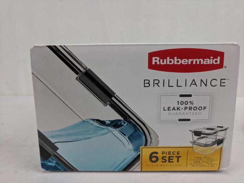 Rubbermaid Brilliance Containers, 6 Piece Set, 2 Small, 1 Medium - New