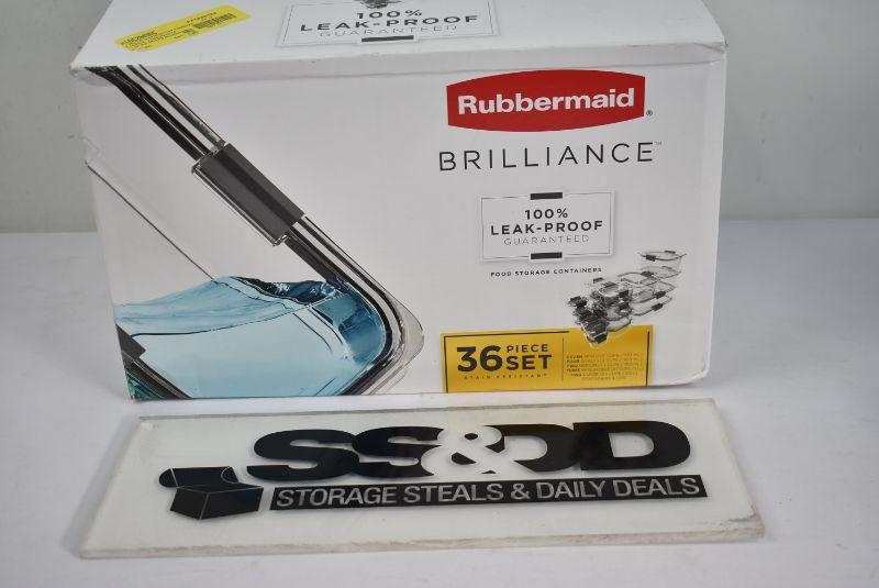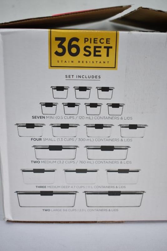 Rubbermaid Brilliance Leak-proof Food Storage Containers, Set of 18. Medium Lids are missing. 31 pieces instead of 36 pieces