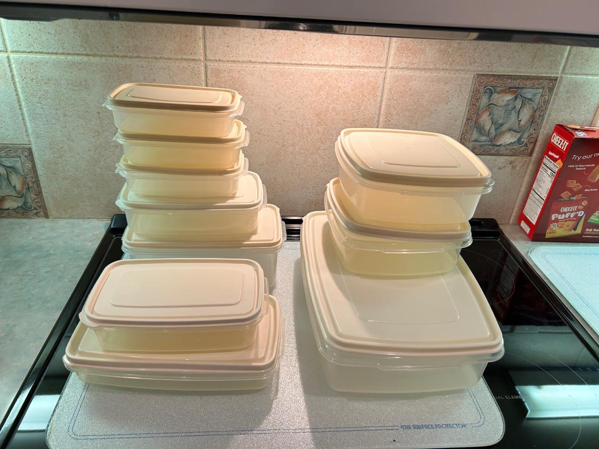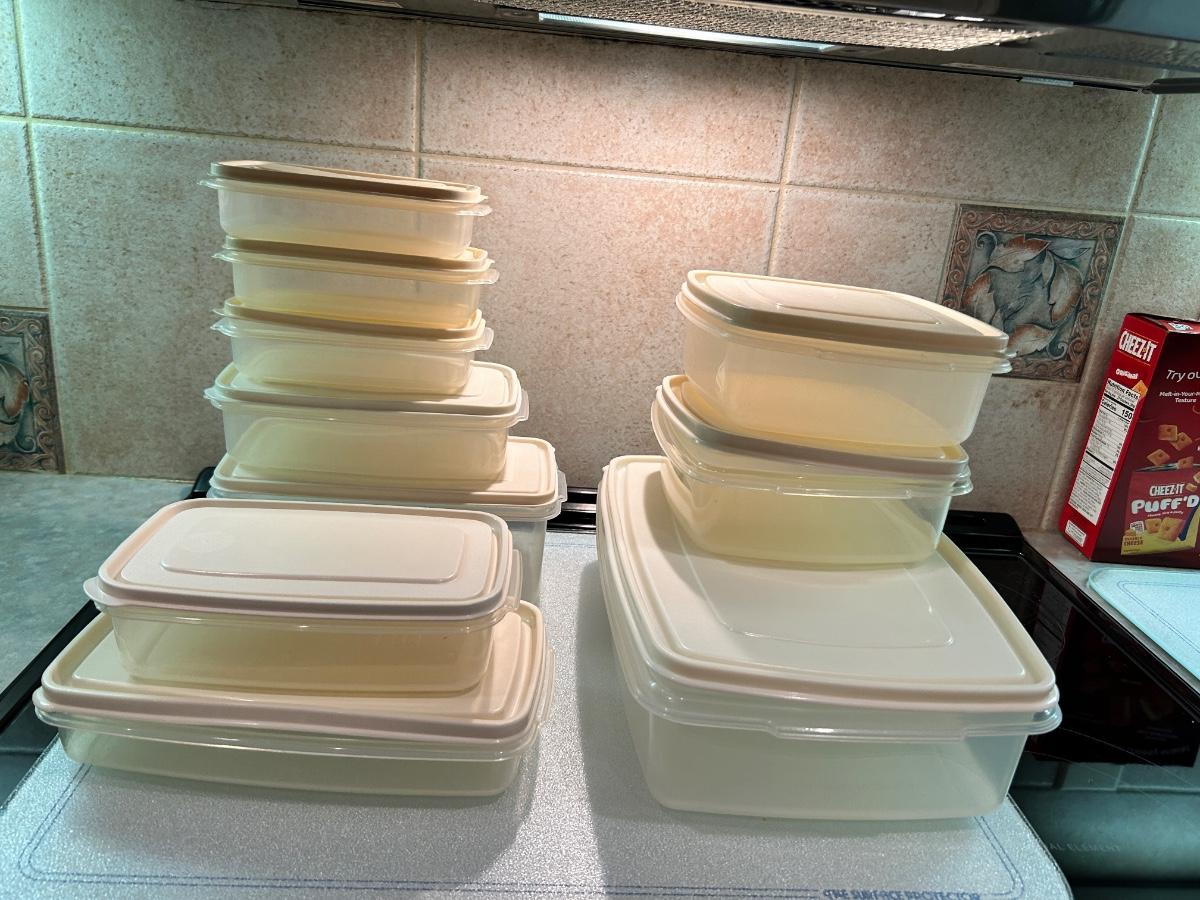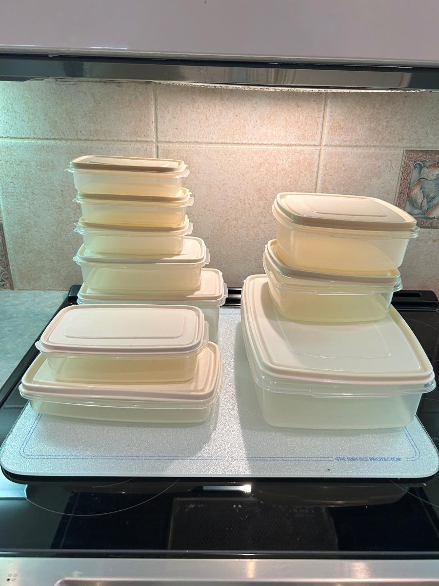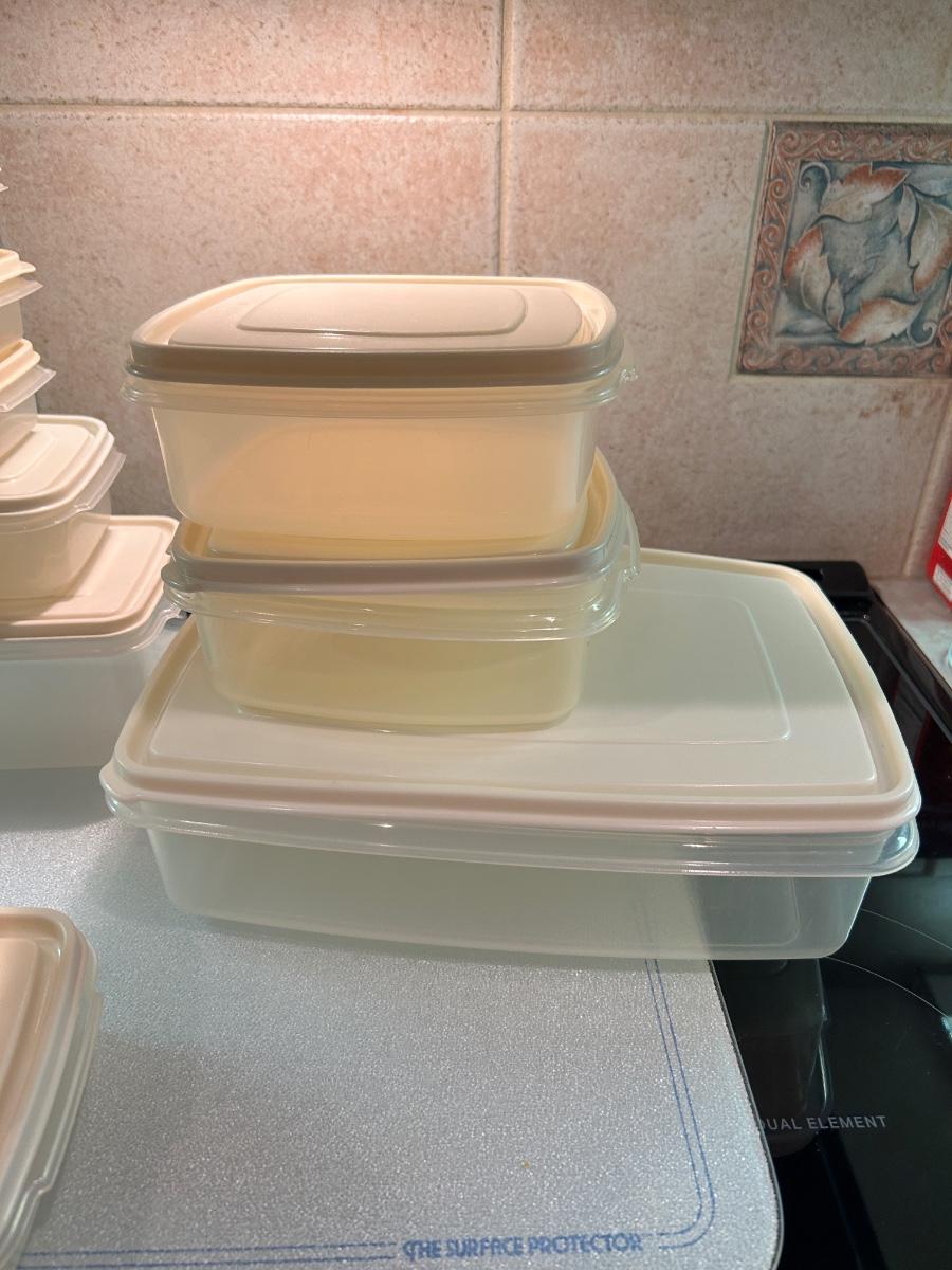 RUBBERMAID CONTAINERS AND GLASS CUTTING BOARD