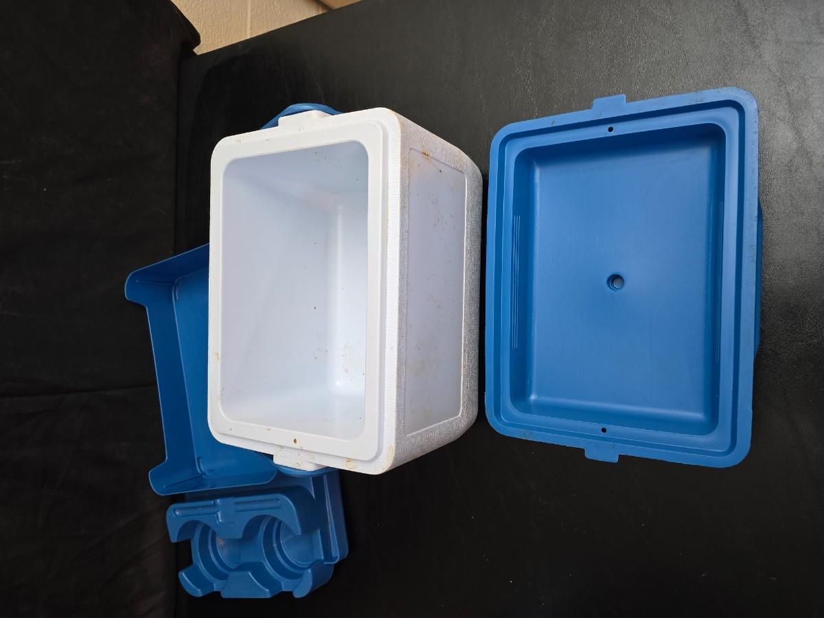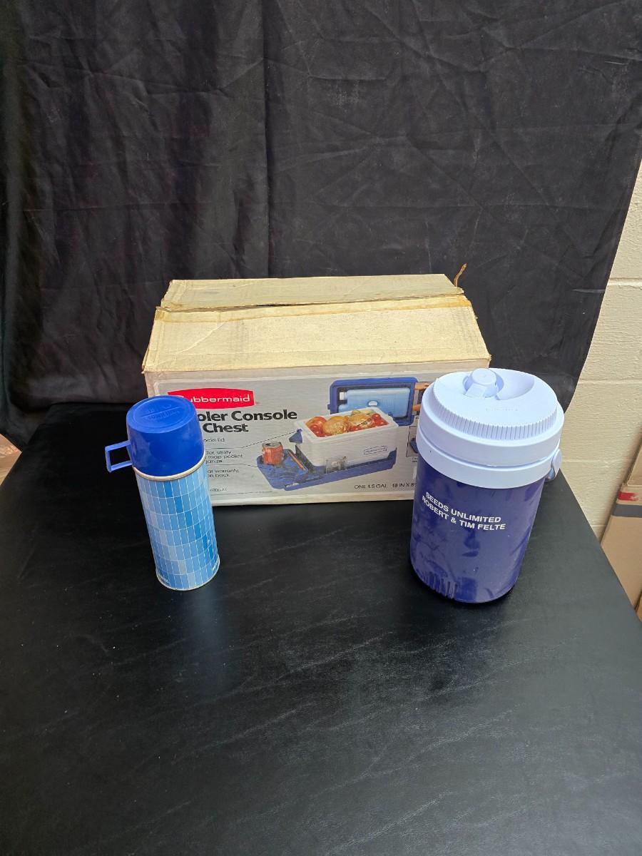 Rubbermaid cooler console ice chest with two thermoses