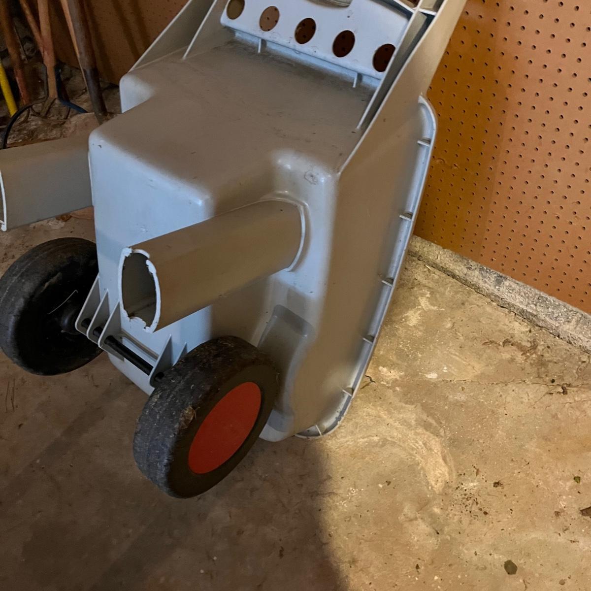 Lot includes a Rubbermaid easy rider lawn cart, Ace Hardware wet or dry hose end sprayer and two Ace Hardware gallon sprayers. Cart measures 20” x 41” x 25”.