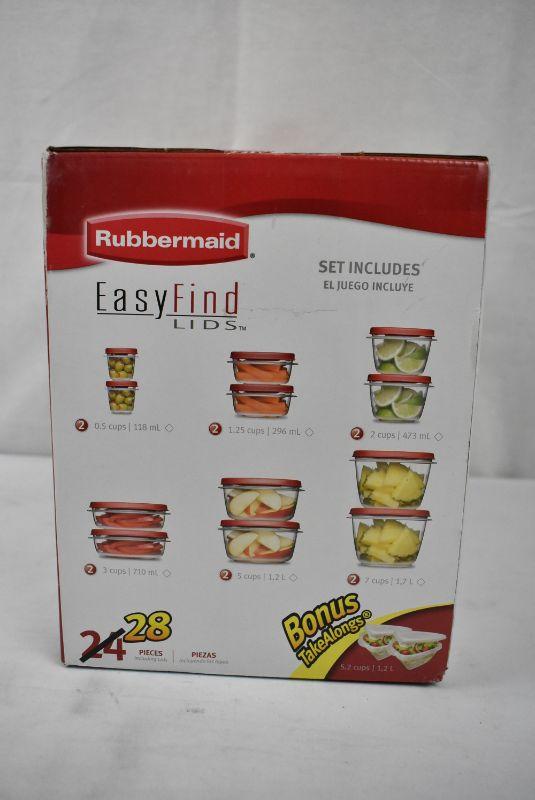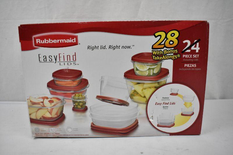 Rubbermaid Food Containers with Easy Find Lids. Set of 28 pieces, Clear & Red - New
