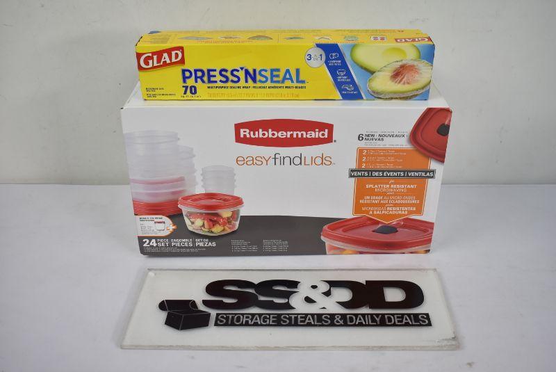 Rubbermaid Easy Find Vented Lids Food Storage Containers, 28-Piece Set Bonus, Racer Red & Glad Press'n Seal Plastic Food Wrap - 70 Square Foot Roll - New