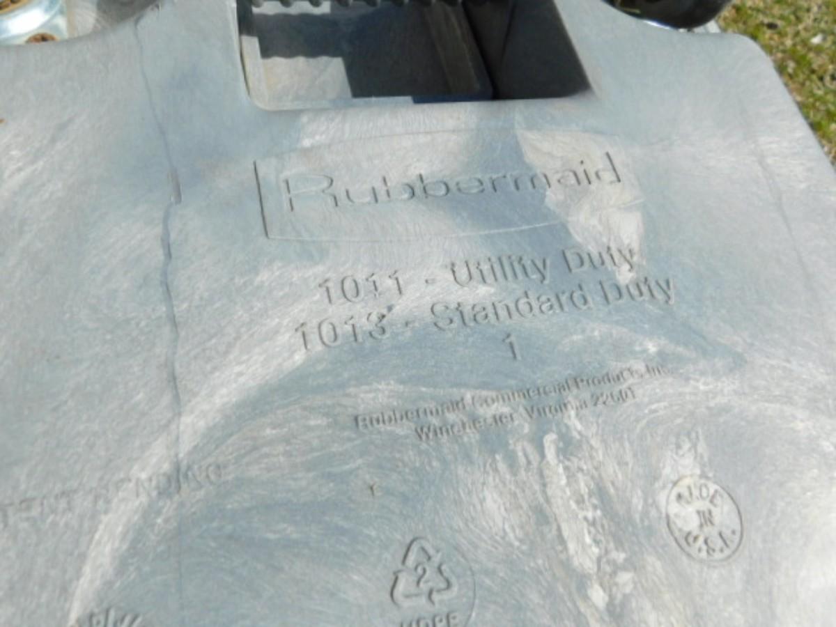 Rubbermaid Heavy Duty Rolling Waste Bin needs a new wheel as shown