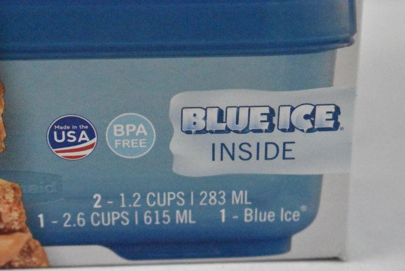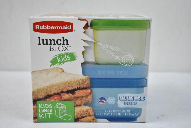 Rubbermaid Lunch Blox Kids Lunch Kit Two 1.2 cups & One 2.6 cups & One Blue Ice - New