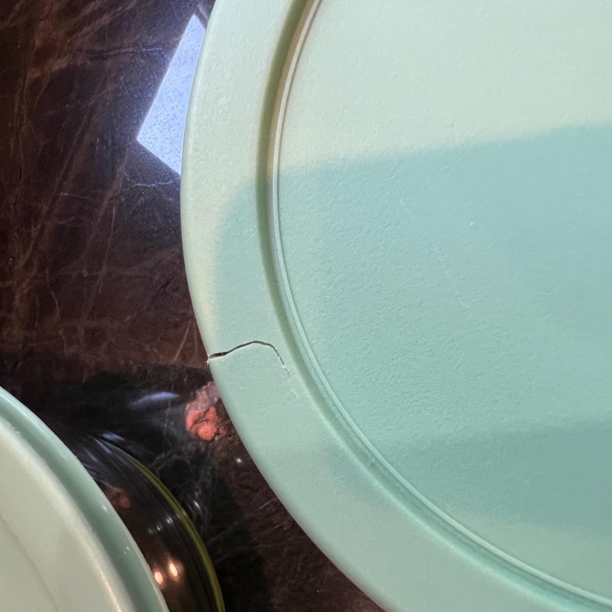 A nice assortment for of glass food storage dish’s with plastic lids that all stack nicely. Note one green lid has a small split.