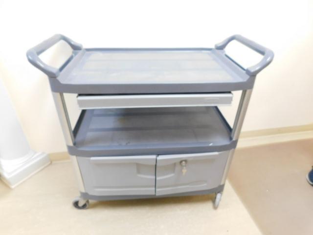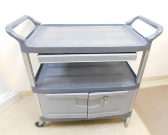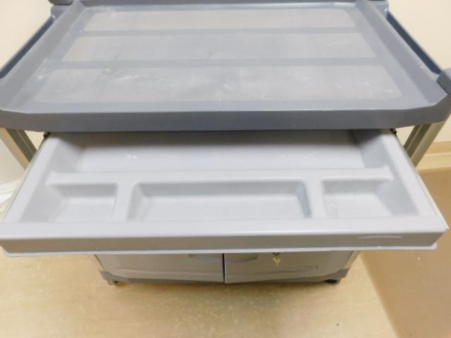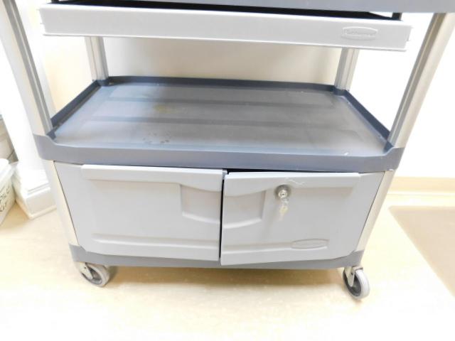 Rubbermaid Roll Cart Work Station with Storage Cabinet and Key