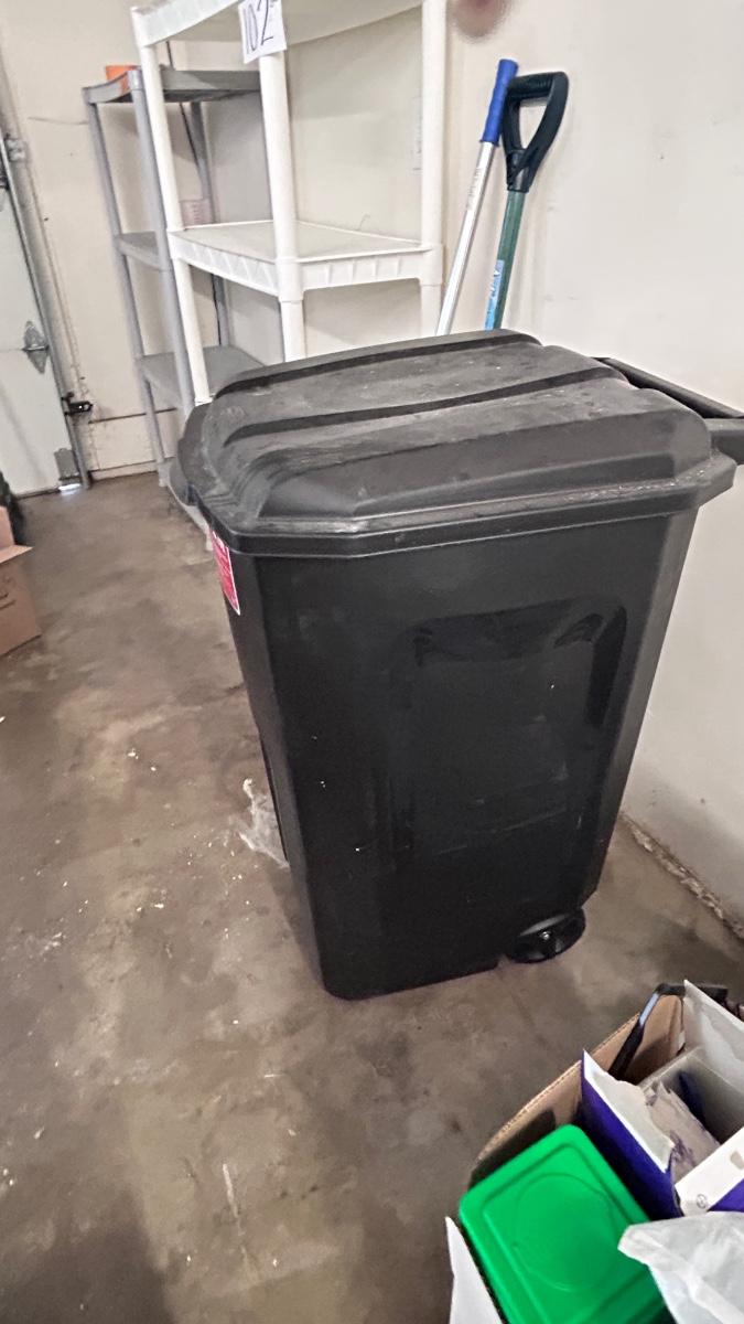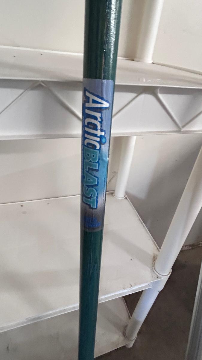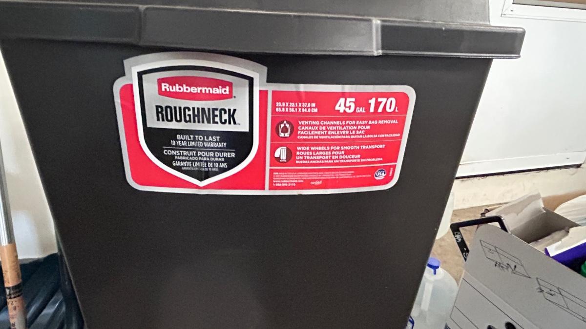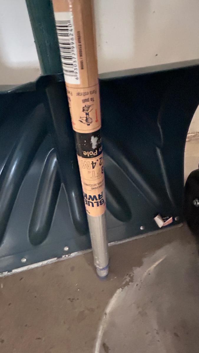 RUBBERMAID ROUGHNECK 42 GALLON TRASH CAN ON WHEELS, ARCTIC BLAST SNOW SHOVEL AND BLUE HAWK MULTI USE TELESCOPING POLE